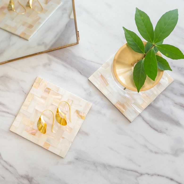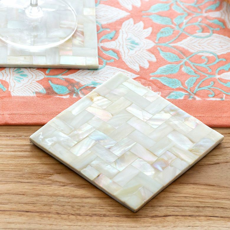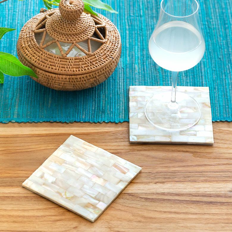 コースターやデザートのトレイにも使えるバリ島のアジアン雑貨 パールシェルのコースター[スクエアタイプ][vn50751-vn50753]【正方形 貝殻 トレー テーブルウェア モダン おしゃれ かわいい ナチュラル ソーサー バリ雑貨 アジアン雑貨 キッチン小物 キッチングッズ キッチン雑貨 アジア雑貨 エスニック】