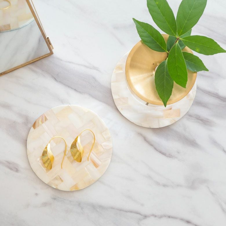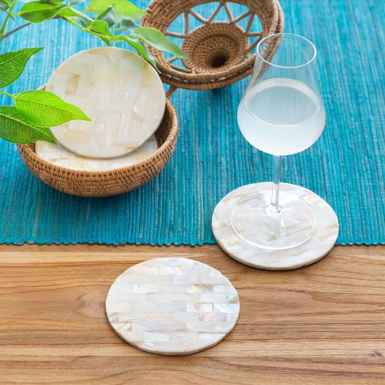 コースターやデザートのトレイにも使えるバリ島のアジアン雑貨 パールシェルのコースター[ラウンドタイプ][vn50750-vn50752]【丸 丸型 丸いコースター 貝殻 トレー テーブルウェア モダン おしゃれ ナチュラル バリ雑貨 アジアン雑貨 キッチン小物 キッチングッズ キッチン雑貨 アジア雑貨 エスニック】