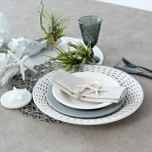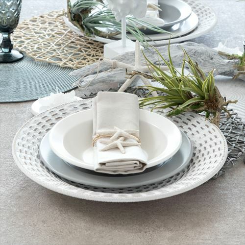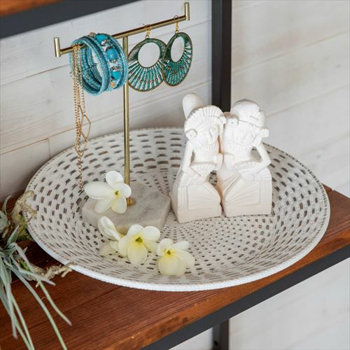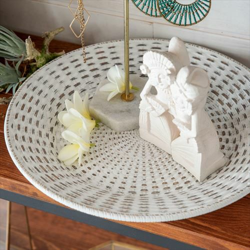ウッドトレー トレイ トレー デコレーショントレイ ラタン編み トレー デコレーショントレー ラタン編柄 丸型 直径34.5cm ホワイト [66585]【 デコレーショントレイ 飾り皿 チャージャープレート ウッドトレイ オブジェ ディスプレイ 編みこみトレー皿 バリ島 ナシチャンプル インカ アジアン 雑貨 アジアン雑貨 】