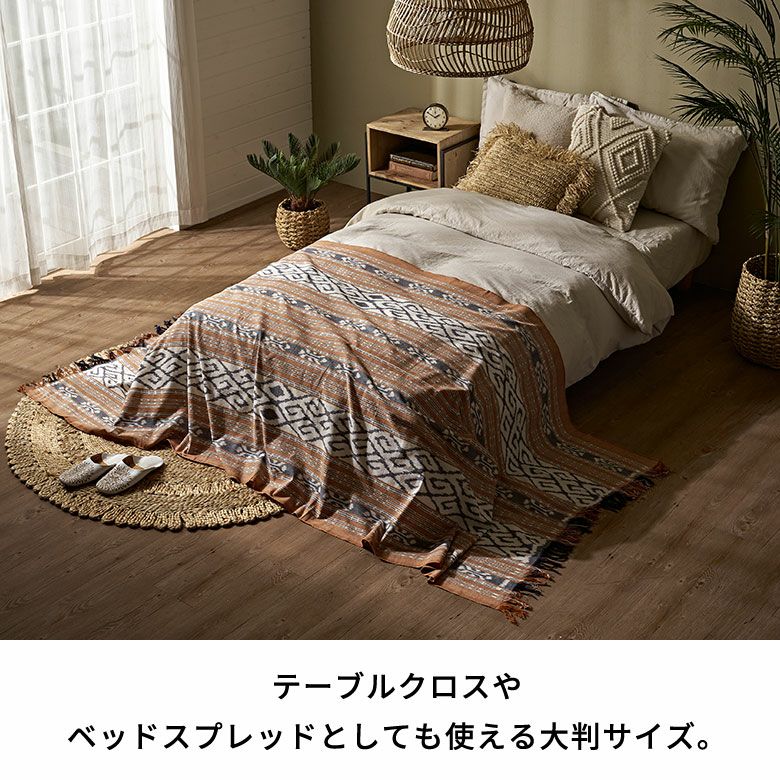 クロス フリンジ付き バリ ソファ ベッド テーブル 椅子 店舗 カフェ レストラン ハンドメイド 手仕事 テーブルセンター トライバル リビング ダイニング 寝室 玄関 ギフト プレゼント イカット タペストリー ウォールデコレーション 約 W 234cm D 115cm H 0.2cm 布 ファブリック コットン 綿 テーブルクロス テーブルランナー テーブルライナー ベッドスプレッド 壁掛け 壁飾り モダン エスニック おしゃれ 北欧 リゾート 雑貨 インテリア アジアン [14045-e]
