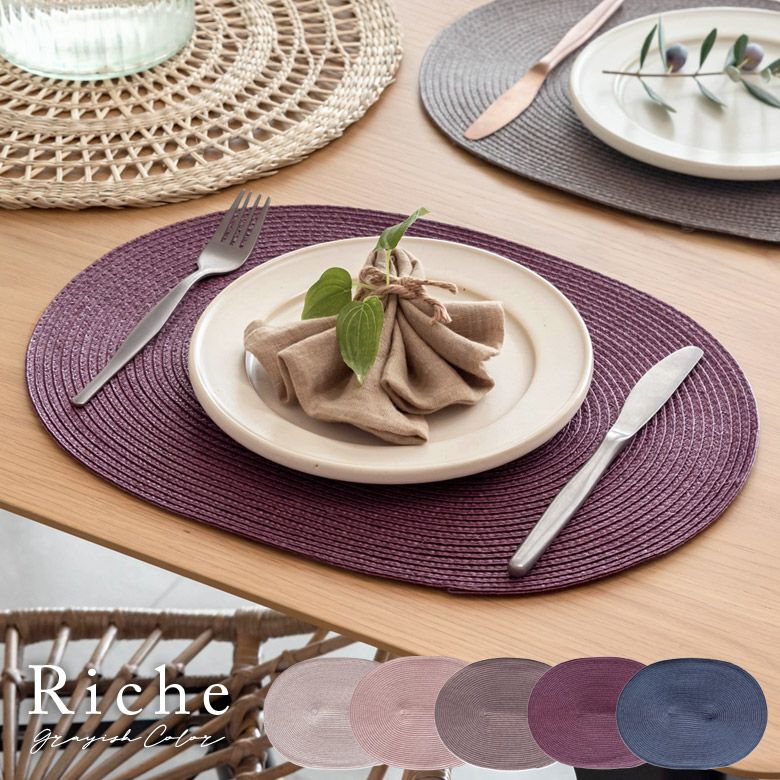 撥水 洗える 無地 シンプル こども 子供 楕円 パーティー 【メール便対応】【コースタープレゼント】ランチョンマット オーバル 4枚セット プレース プレイス マット W 40cm D 30cm グレイッシュ カラー 5色 [lm-67002]【 Riche リッシュ ランチ クリスマス テーブル コーディネート 北欧 おしゃれ リゾート アジアン 雑貨 】