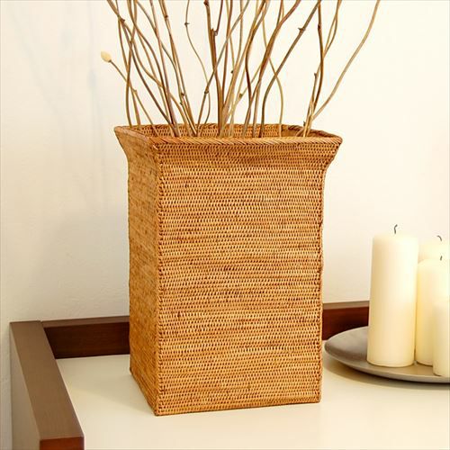 ゴミ箱はもちろんプランターカバーや収納バスケットにも使える アタで編まれたフチがカールしたバスケット[2004]【四角形 見えない ダストBO× くずかご ダストボックス ごみばこ 鉢カバー おしゃれ 縦型 アジアン リビング バリ 雑貨 アジアン雑貨 ゴミ箱 ごみ箱 インテリア 寝室 アジアン家具 くず入れ 屑籠】