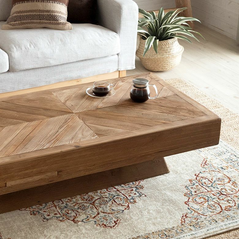 コーヒーテーブル 机 アンティーク調 カフェ 展示テーブル 什器 センターテーブル テーブル 木製 W 125 × D 65 cm 長方形 [91520]【 ローテーブル 大型 古材 ウッド パイン 大きめ 寄木 ジオメトリック 幾何学 おしゃれ ナチュラル ヴィンテージ ロースタイル 床座スタイル リビング 応接室 オフィス ディスプレイ台 店舗】