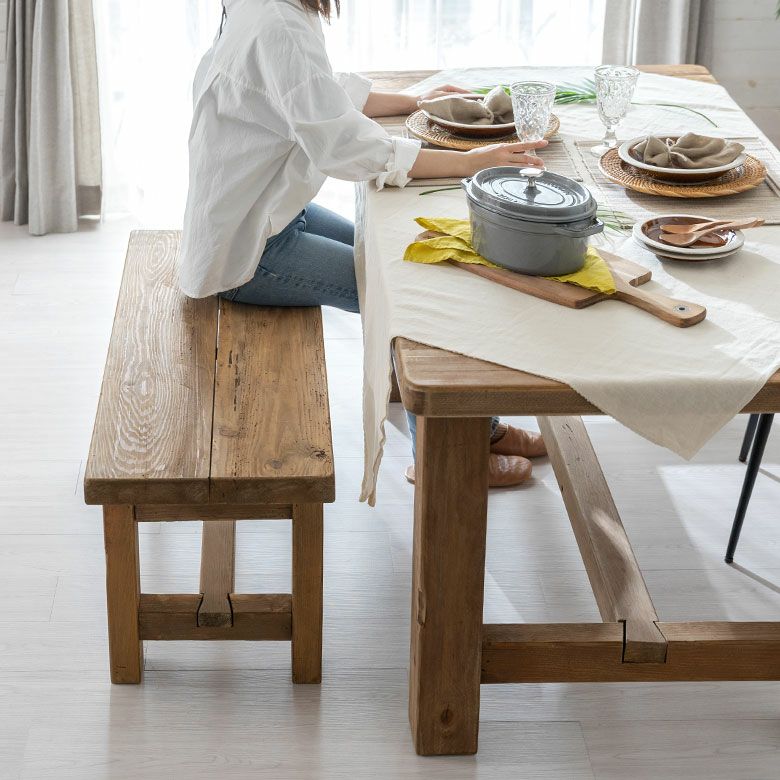ベンチ椅子 ウッドベンチ ダイニング 台 腰掛け リビング ロングチェア 玄関 寝室 ダイニングチェア 玄関ベンチ 屋内 天然木 木製 無垢材 新生活 引っ越し モデルハウス ダイニングベンチ ベンチ ウッドベンチ 古材 ウッド パイン材 約 W 110 × D 40 × H 45 cm 椅子 チェア いす イス 長椅子 玄関スツール サステナブル 2人掛け 二人掛け 2P おしゃれ ナチュラル シンプル 北欧 家具 インテリア 和モダン アジアン 91558