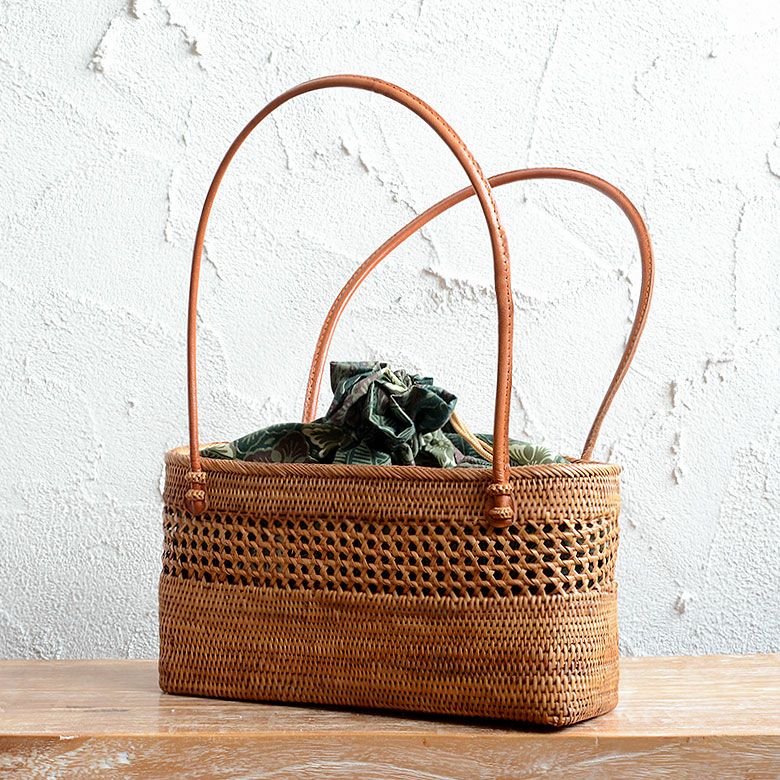 バリ島の天然素材で編まれた人気のかごバッグ。 アタで編まれた アジアン かごバッグ[内袋付き](13210)【おしゃれ トートバッグ レッド レディース かわいい カゴバッグ 夏 ショルダー バスケット アジアン雑貨 エスニック 籠バッグ カゴ かごバック アタバック アタバッグ バリ雑貨 バリ島】