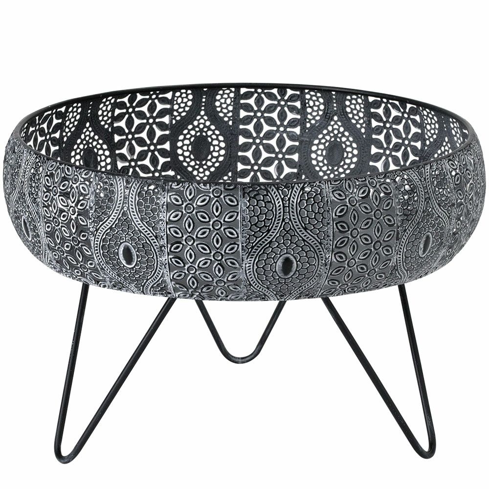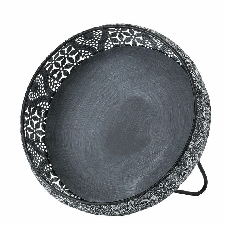 メタルバスケット ディスプレイ ブラックアイアン アイアン脚 フラワーバスケット プランターカバー スチール 脚付き Lサイズ 直径38cm [90088]【 ディスプレイスタンド フラワースタンド アイアン ブラック グレー 植木鉢カバー 透かし模様 透かし彫り アラベスク柄 おしゃれ トレイ型 スタンド型 リゾート シャビーシック SPICE】