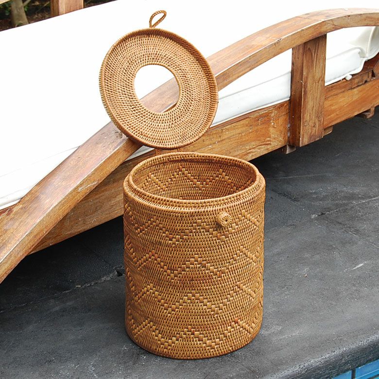 天然素材100%のアジアンバスケット。ゴミ箱はもちろん収納バスケットにも使えるバリ島の人気アジアン雑貨 フタに穴のあいたアタ製 アジアン ごみ箱[円柱形][2008 2010]【円形 丸型 丸い 見えない フタ付き ふた付きダストBO× くずかご ダストボックス ごみばこ おしゃれ 縦型 アジアン リビング バリ 雑貨 アジアン雑貨 ゴミ箱 インテリア 寝室 アジアン家具 くず入れ 屑籠】