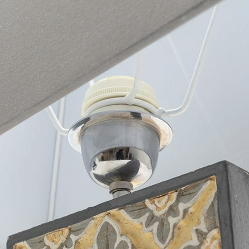 ライト 照明器具 卓上ライト デスクライト スタンド照明 寝室 テーブルランプ コットンシェード 木彫り風スタンド イエローフラワー [※電球別売り 40w 60w対応][13557] 【 照明 間接照明 スタンドライト ナイトランプ スタンドシェードランプ インテリア おしゃれ アンティーク風 アジアン雑貨 バリ島 リゾート ホテルライク 】