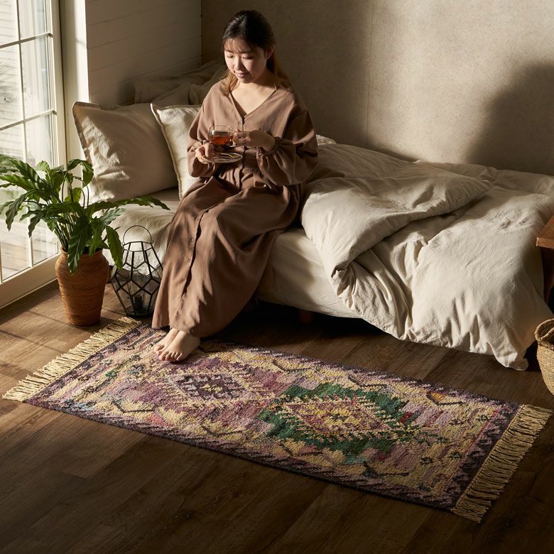 インド製 玄関マット 玄関 キッチン キッチンマット ベッド 寝室 ベッドルーム  ハンドメイド 手仕事 rug carpet モロカン 引っ越し 模様替え 一人暮らし ワンルーム ギフト プレゼント ラグ ラグマット コットン 70×140cm パンジャ織り オールシーズン 春 夏 秋 冬 リサイクル エコ サスティナブル サステナブル 絨毯 じゅうたん マット 敷物 140cm 70×140 幅140 おしゃれ 北欧 モロッカン リゾート エスニック オリエンタル アジアン [34597]