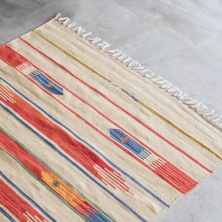 大注目のキリム調ラグ☆インテリアになるエスニックラグ キリムラグ コットン 100×140cm [Aタイプ] (31900)【 コットンラグ ラグ マット キリム インド綿 オルテガ エスニック ネイティブ 民族 カーペット マット ラグマット 100cm 絨毯 じゅうたん アジアンラグ アジアンカーペット らぐ 夏用 おしゃれ 】