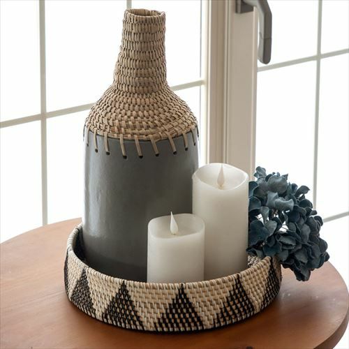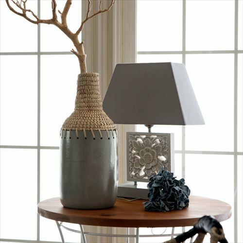 花瓶 花器 花入れ 造花 フラワーポット リゾートインテリア フラワーベース テラコッタ製 ※水入れ不可 シーグラス編み込みデザイン グレー×ナチュラル 高さ約27cm [13722]【 花瓶 花びん 花器 丸形 ドライフラワー アートプランツ フェイクグリーン オブジェ デコレーション 置物 おしゃれ アジアン雑貨 】