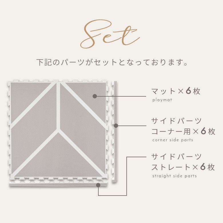 サイドパーツ付 ラグ ジョイント かわいい インテリア 雑貨 ジョイントマット プレイマット 約 W 60cm D 60cm H 1.2cm フロア マット ベビー 赤ちゃん グレー [84083-gy]【 Bonheur ボヌール ニュアンスカラー 幼児 子供 キッズ 厚手 大判 正方形 防音 床 キズ防止 撥水 子供部屋 北欧 シャビーシック おしゃれ EVA アジアン 】