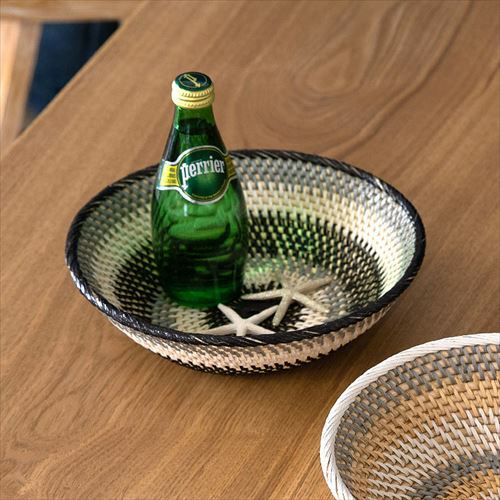 収納カゴ リビング ボヘミアン BOHO バスケット ラウンド型 ラタン製 編み込みデザイン Mサイズ 径約30cm 深さ8.5cm [13831]【 ボウル バスケットトレイ トレイバスケット 収納バスケット 円形 壁掛けトレイ ウォールデコレーション プレート 壁飾り おしゃれ トライバル アジアン雑貨 バリ島 】