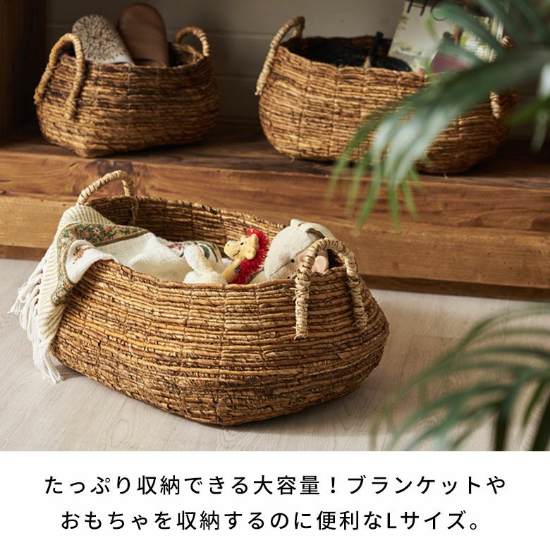 バリ島の職人の手仕事から生まれる、温もり溢れるアバカ素材のバスケット。 バスケット 収納 かご おしゃれ 小物入れ アジアン雑貨 アバカ W60×D45×H30cm 楕円 ディスプレイ インテリア かご アジアン バリ 雑貨 かごバスケット 持ち手付き ダイニング カゴ リビング ランドリー アジア雑貨 北欧 リゾート バリ島のアジアンバスケット [14195]