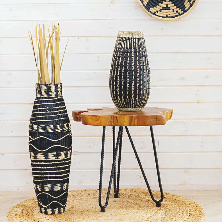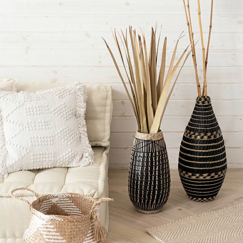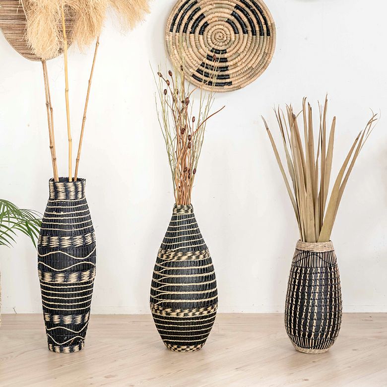 ハンドメイド リビング 玄関 寝室 置物 置き物 インテリア フラワーベース バンブー製 シーグラス製 水入れ不可 壺型 W 19cm D 19cm H 39cm [51233]【 花瓶 花びん 花器 ドライフラワー アートプランツ フェイクグリーン オブジェ おしゃれ リゾート BOHO トライバル モダン アフリカン エスニック アジアン雑貨 】