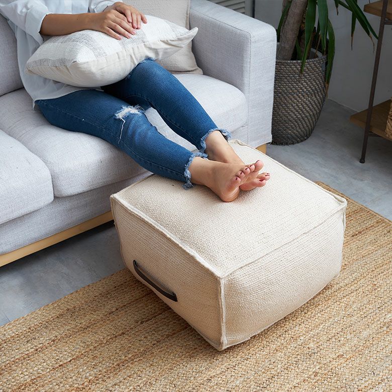 椅子 チェア フットスツール 大きい ナチュラル シンプル プフ スツール オットマン プーフ フロアスツール 四角 スクエア ホワイト 白 コットン 綿 W54×D54×H36cm [34514]【 フロアクッション フロアソファ フロアソファー 足置き 正方形 家具 おしゃれ モロッコ インテリア 北欧 アジアン 雑貨 アジアン雑貨 】