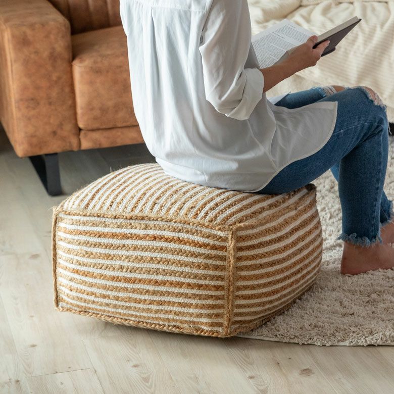 椅子 チェア フットスツール 大きい ナチュラル シンプル プフ スツール オットマン プーフ フロアスツール 四角 スクエア ボーダー ジュート W54×D54×H40cm [34515]【 フロアクッション フロアソファ フロアソファー 足置き 正方形 家具 おしゃれ モロッコ インテリア 北欧 アジアン 雑貨 アジアン雑貨 】