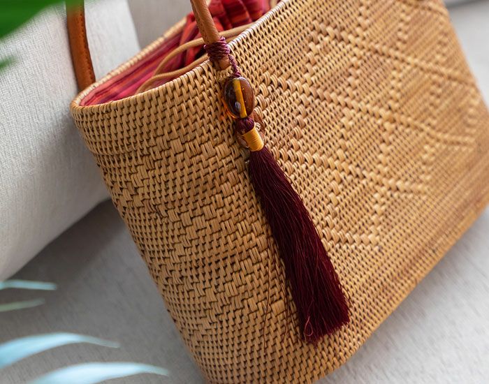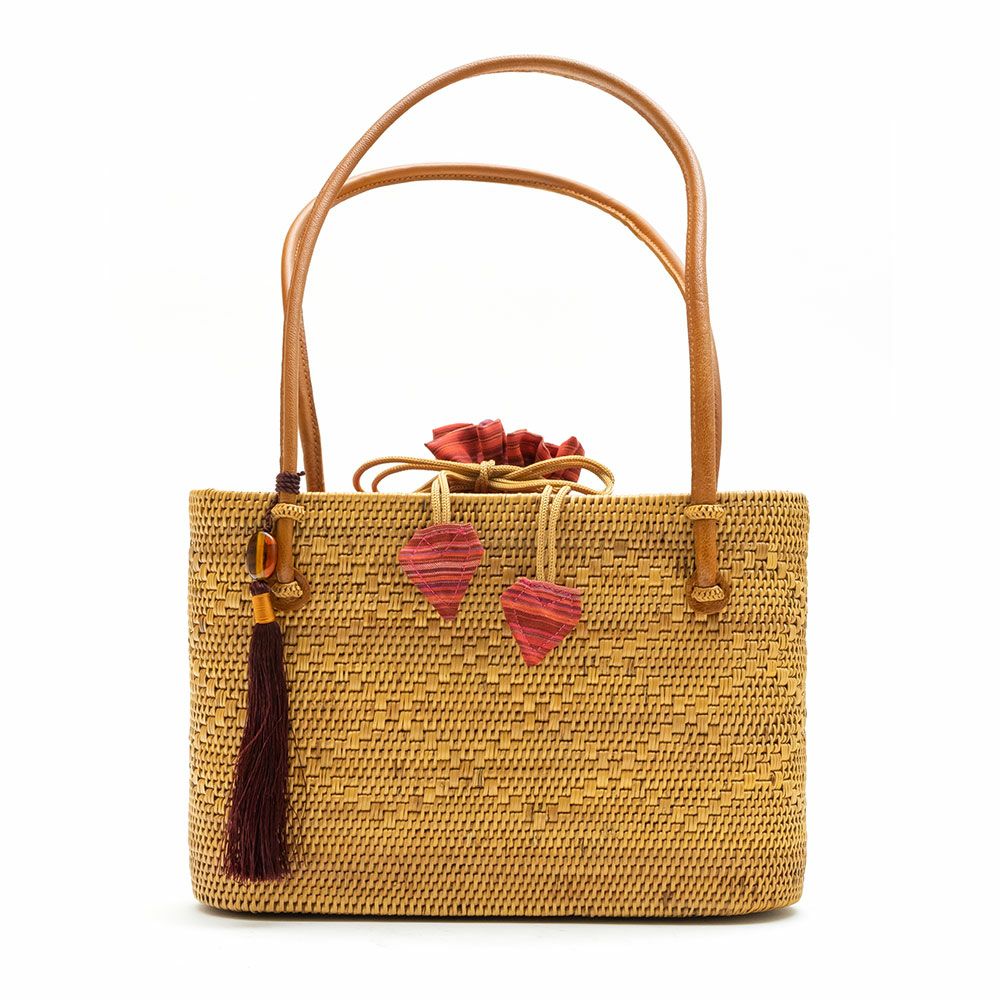 当店オリジナル!カラフルなタッセル付きで可愛さ倍増☆ アジア工房オリジナルタッセル付き アタで編まれたかごバッグ Dタイプ 【レッド】(2916-13022)【かごバッグ トートバッグ レディース カゴバッグ アジアンバッグ アタ タッセル ナチュラル バスケット 巾着付き きれいめ エスニック 浴衣 アジアン雑貨】