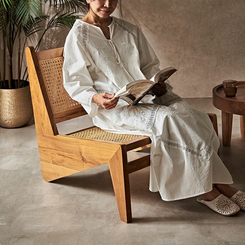 イス プライベートチェア スツール 足置き 木製 ゆったり チェア 1人掛け 1P アーム付き 肘掛付き オットマン付き W 70 × D 77 × H 77 いす 椅子 アームチェア [91530]【 天然木 チーク ポリエチレン PE ラタン風 耐水 汚れに強い ヴィンテージ ミッドセンチュリー 北欧 リゾート おしゃれ ナチュラル シンプル 家具 アジアン 】