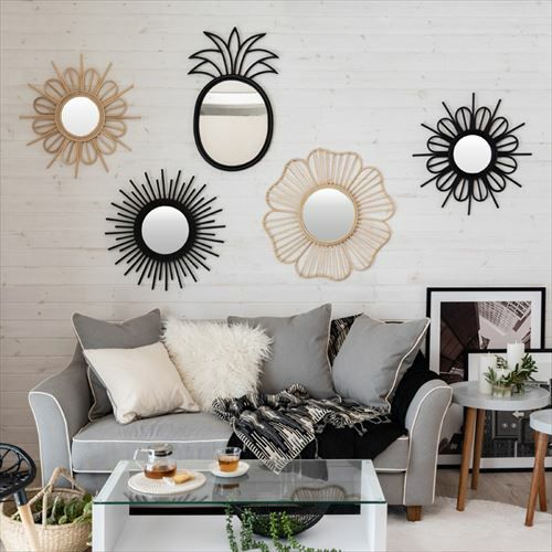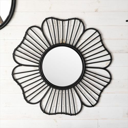 壁掛鏡 鏡 壁掛け式 吊り下げ ミラー デザインミラー 化粧鏡 ミラー 鏡 フラワーA 壁掛け ラタン アジアン 直径60cm ミラー部分径19cm[13708]【 壁掛けミラー 放射状 太陽 花形 ウォールミラー 壁掛け鏡 デザインミラー 円形 ウォールデコレーション インテリア アジアン雑貨 バリ島 リゾート おしゃれ 】
