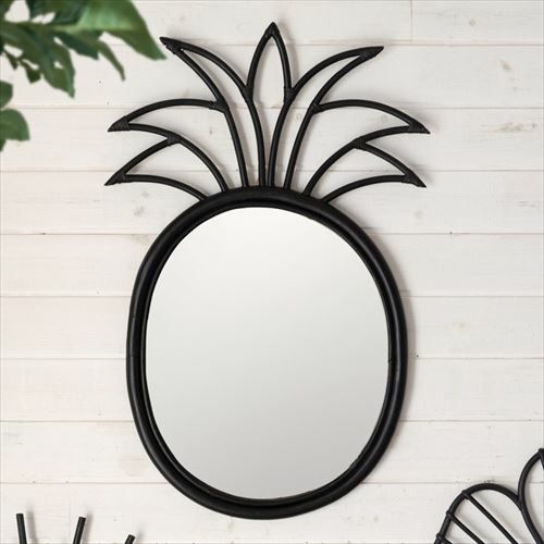 壁掛鏡 鏡 壁掛け式 吊り下げ ミラー デザインミラー 化粧鏡 ミラー 鏡 パイナップル 壁掛け ラタン アジアン 44×70cm ミラー部分34.5×41cm[13706]【 壁掛けミラー ウォールミラー 壁掛け鏡 デザインミラー 円形 ウォールデコレーション インテリア アジアン雑貨 バリ島 リゾート おしゃれ 】