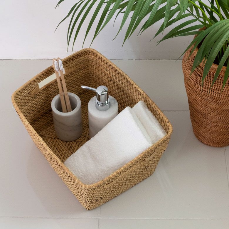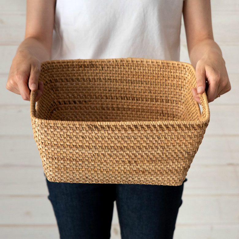 収納ボックス 整理整頓 小物収納 収納バスケット 収納バスケット ラタン製 ホワイトウォッシュ 正方形 スクエア型 約17.5×17.5cm 深さ5.5cm [13464]【 収納バスケット 小物収納 ラタンバスケット 小物入れ アメニティバスケット トレイバスケット アジアン雑貨 おしゃれ 北欧 バリ島 】