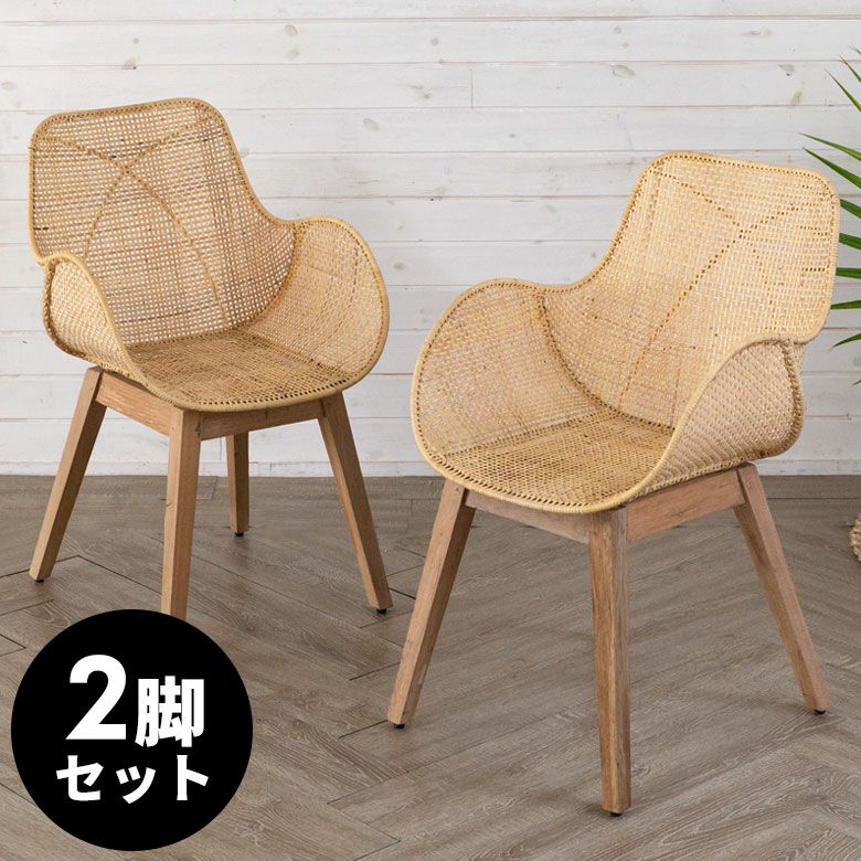 ダイニング椅子 いす イス カフェチェア デスクチェア カフェ チェア ラタンチェア ダイニングチェア 2脚セット リビングチェア ラタン 籐 ベージュ 座面高 42cm シンプル ナチュラル 家具 インテリア キッチン ダイニング 食卓 椅子 食卓椅子 1人掛け 1P 1人用 ダイニングチェアー リゾート おしゃれ 北欧 モダン アジアン [set-91589]