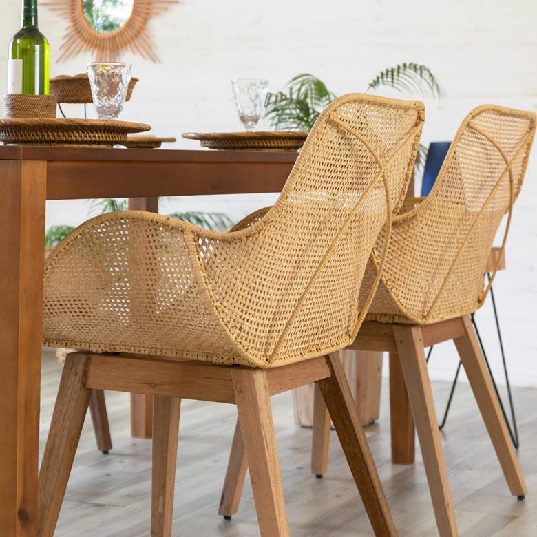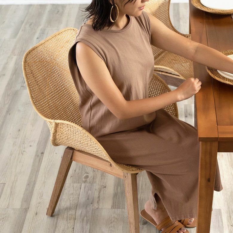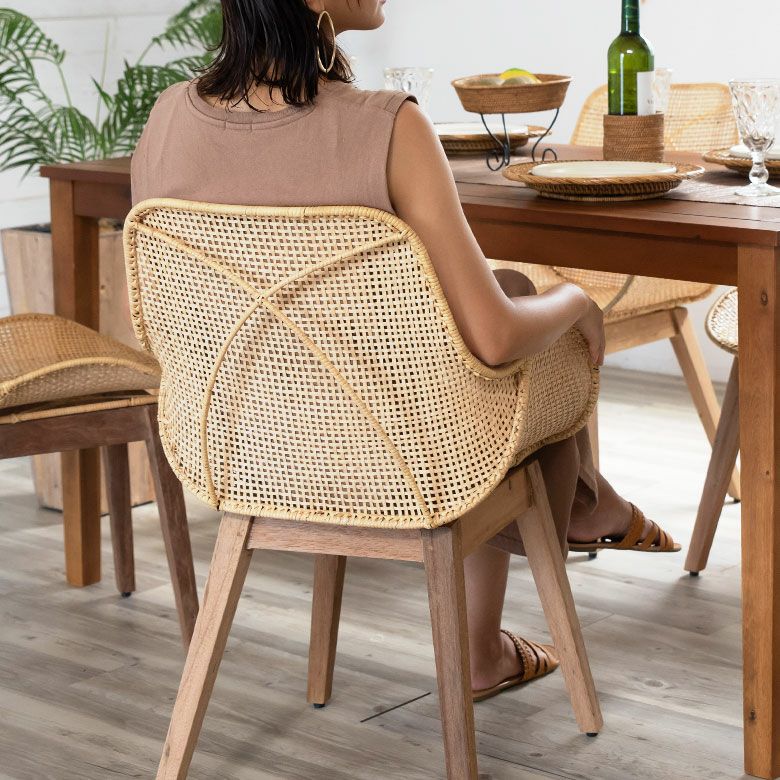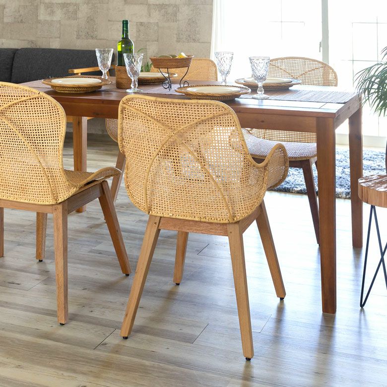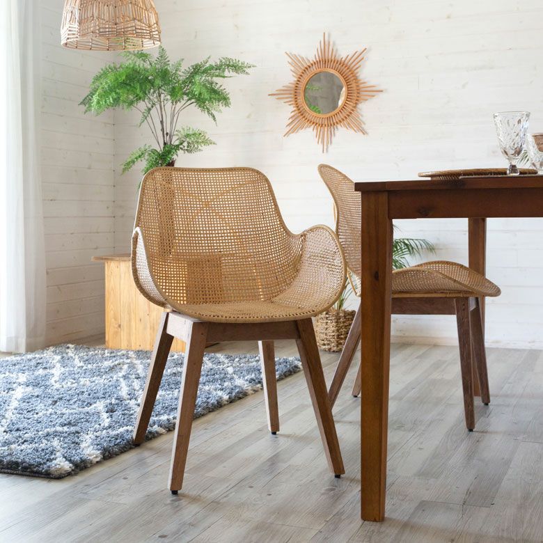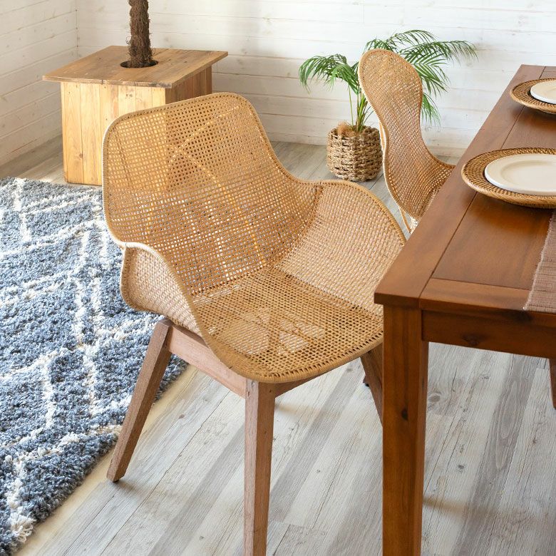 ダイニング椅子 いす イス リゾートチェア 1人掛け 一人掛け 1P 【2脚セット】 チェア ダイニングチェア ラタンチェアー ラタン家具 ラタンチェア ラタン 椅子 ラタン製 木製脚 籐 籐椅子 籐家具 [set-13885]【 約 W53 × D59 × H81 メッシュデザイン reCALME おしゃれ リゾート 北欧 ナチュラル アジアン家具 アジアン 家具 】