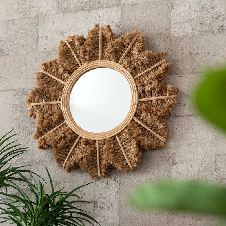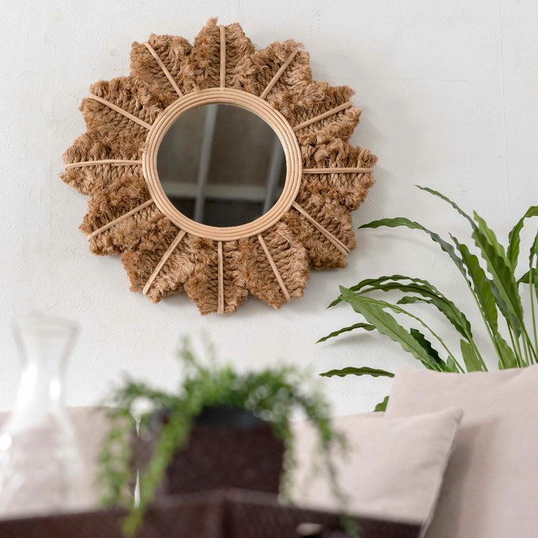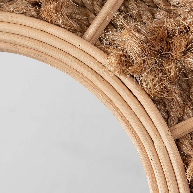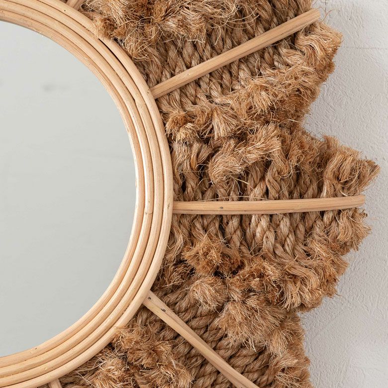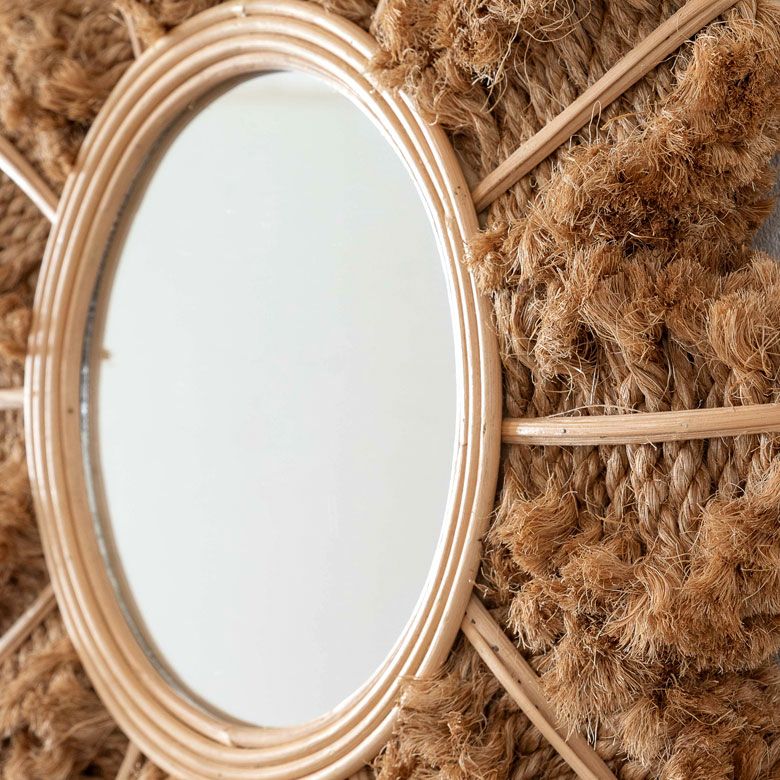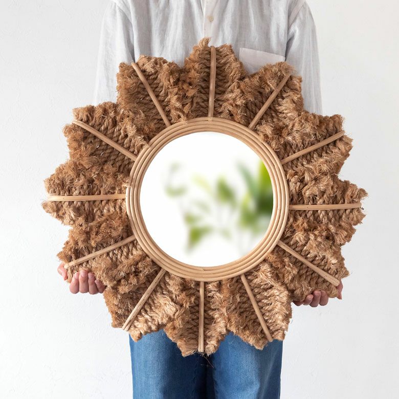 籐 天然素材 壁掛鏡 吊り下げ デコレーション 壁掛け式 ミラー 鏡 壁掛け ラタン 麻 ロープ 約 直径 60cm [13955]【 壁掛けミラー ウォールミラー 壁掛け鏡 デザインミラー ウォールデコレーション インテリア おしゃれ アジアン エスニック BOHO ボタニカル ナチュラル 天然素材 アジアン雑貨 バリ島 リゾート 】