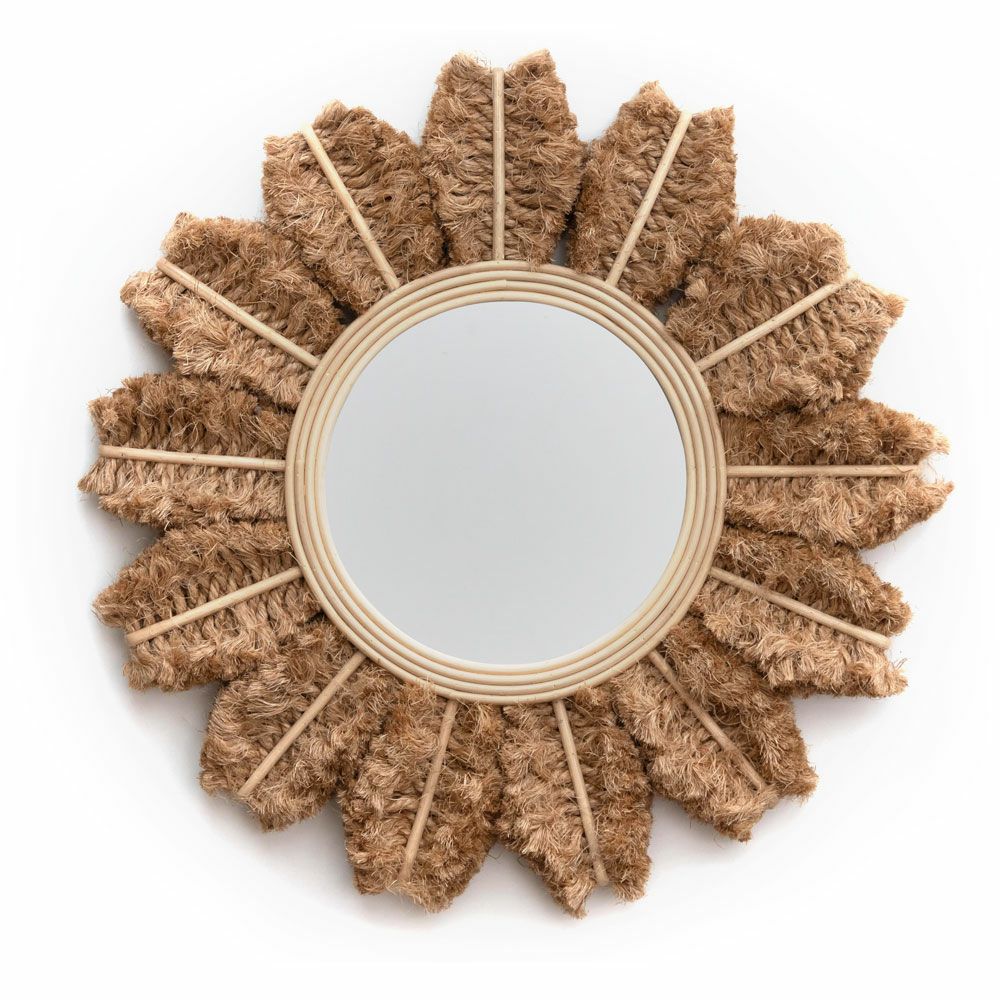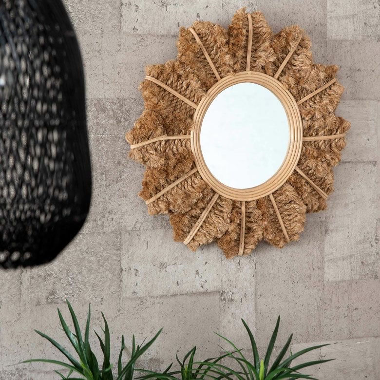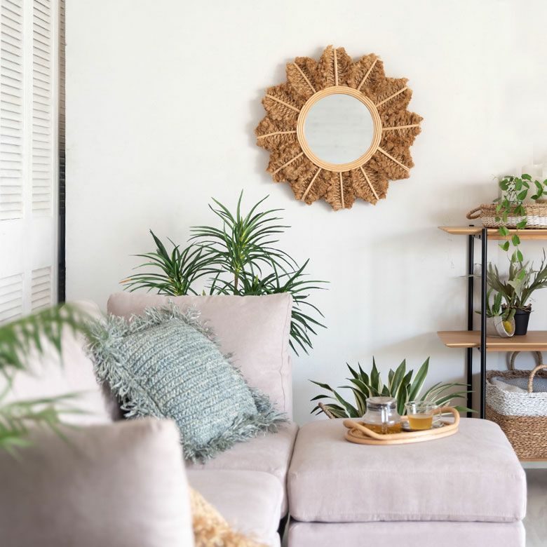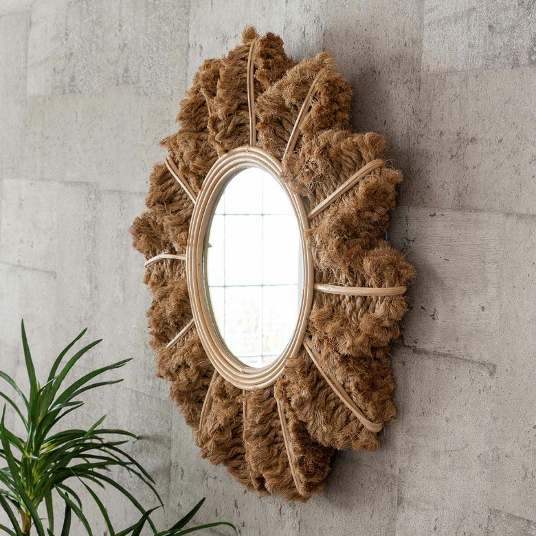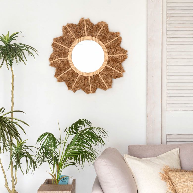 籐 天然素材 壁掛鏡 吊り下げ デコレーション 壁掛け式 ミラー 鏡 壁掛け ラタン 麻 ロープ 約 直径 60cm [13955]【 壁掛けミラー ウォールミラー 壁掛け鏡 デザインミラー ウォールデコレーション インテリア おしゃれ アジアン エスニック BOHO ボタニカル ナチュラル 天然素材 アジアン雑貨 バリ島 リゾート 】