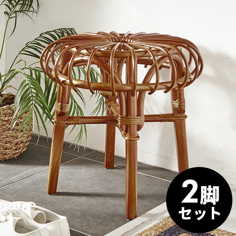 ダイニング リビング いす カフェチェア 寝室 玄関 ディスプレイ スツール ラタンスツール 2脚セット ラタン 籐 椅子 イス 座面高 45cm オットマン デザイン ナチュラル 家具 インテリア 丸椅子 チェア チェアー ラタンチェアー 1人掛け 1P 1人用 コンパクト 腰掛け リゾート 店舗 カフェ おしゃれ 北欧 モダン アジアン [set-91587]