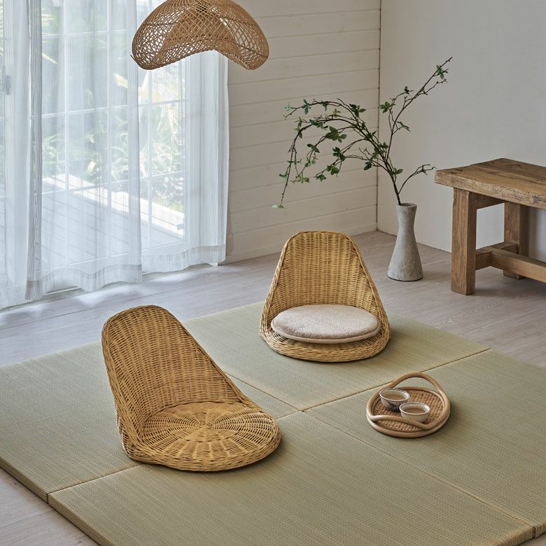 ラタンチェアー 完成品 カフェ 和風 和モダン デザインチェア 応接間 リビング 店舗 ヴィンテージ風 ビンテージ風 飲食店 居酒屋 シンプル ディスプレイ オブジェ ダイニング ホテル 座椅子 ラタン 籐 天然素材 椅子 いす イス チェア 背もたれ 約 W 43cm D 51cm H 30cm SH 4cm ナチュラル ベージュ ハイバック 座いす 座イス チェアー 腰掛 コンパクト ラタンチェア インテリア 軽量 おしゃれ 北欧 リゾート 家具 雑貨 アジアン [14036]