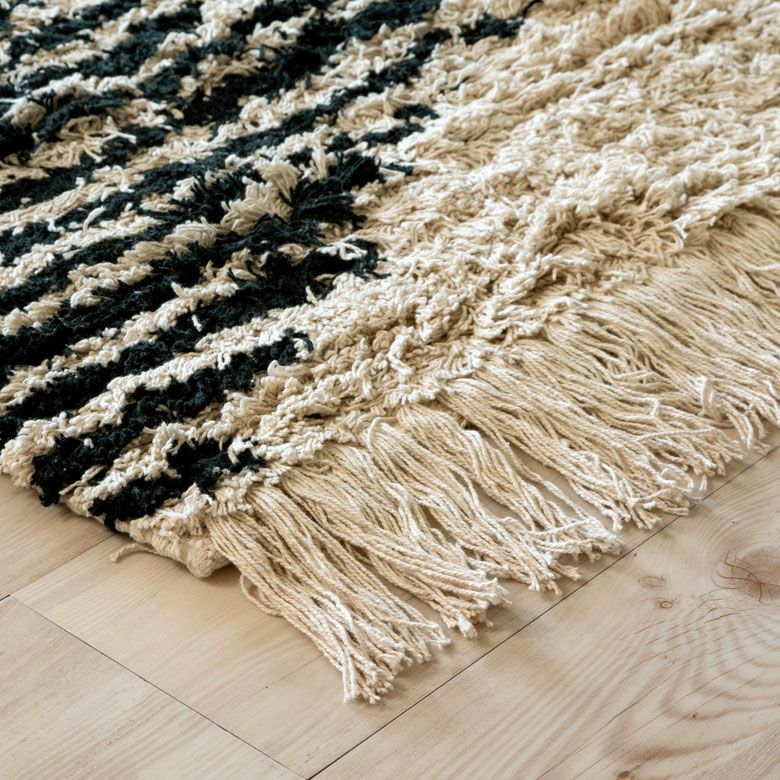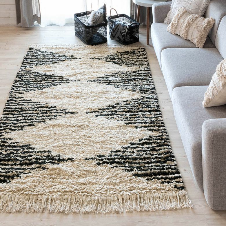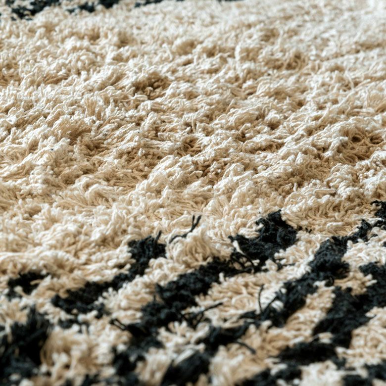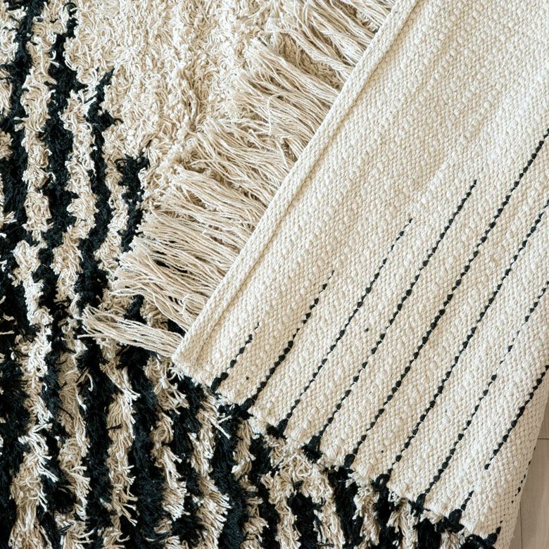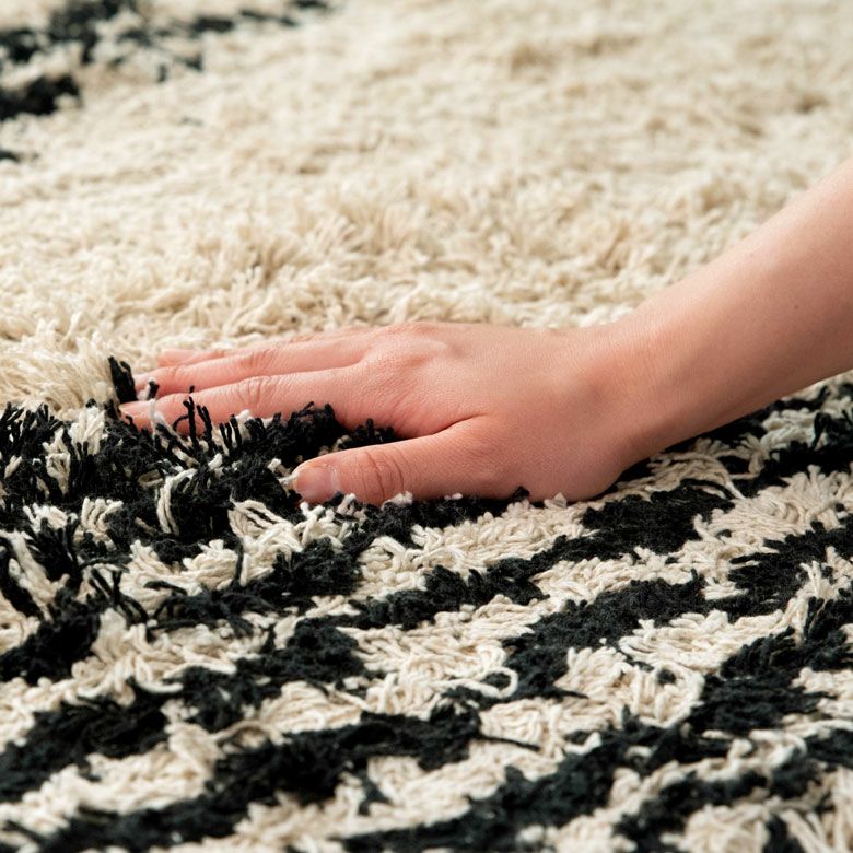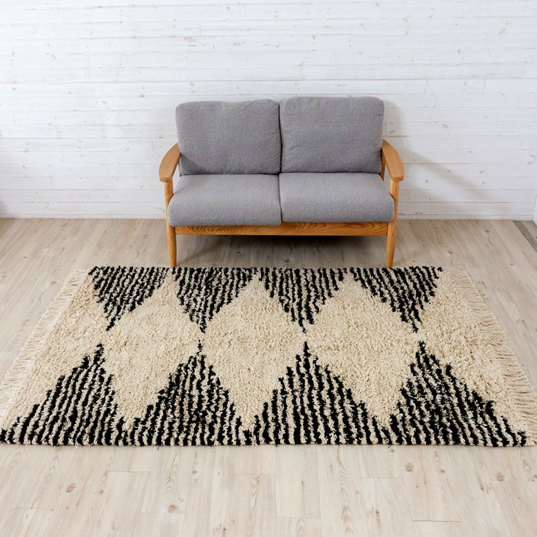 シャギーラグ ダイヤ ライン コーディネート コットン 140×200 ラグ ラグマット ダイヤ柄 ダイヤモンド シルエッ ト デザイン 140×200cm 白黒 BOHO [34416]【 カーペット 絨毯 じゅうたん おしゃれ お洒落 エスニック ボーホー モノトーン 長方形 オールシーズン 春 夏 秋 冬 厚手 敷物 マット アジアン アジアン雑貨 】