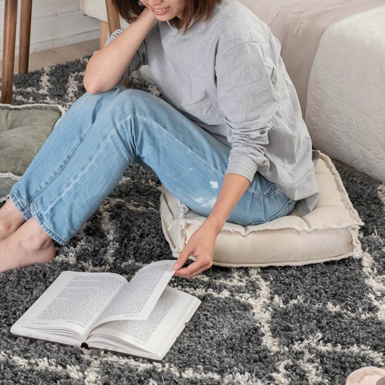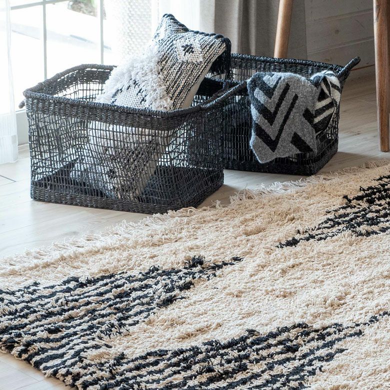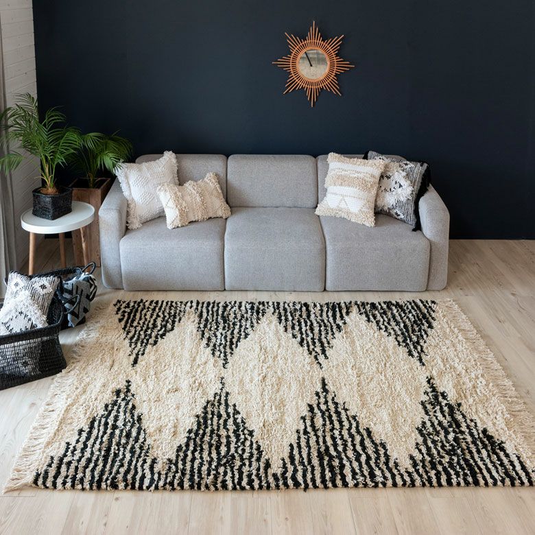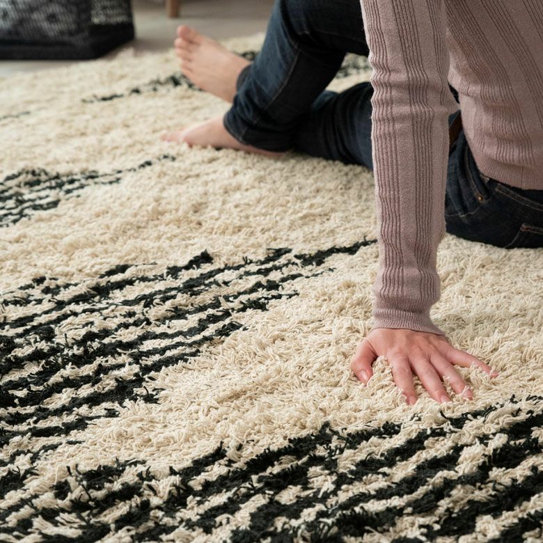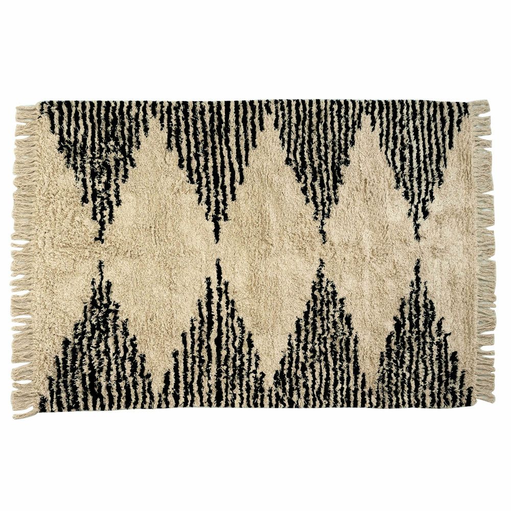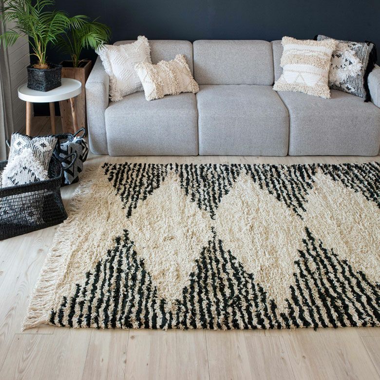 シャギーラグ ダイヤ ライン コーディネート コットン 140×200 ラグ ラグマット ダイヤ柄 ダイヤモンド シルエッ ト デザイン 140×200cm 白黒 BOHO [34416]【 カーペット 絨毯 じゅうたん おしゃれ お洒落 エスニック ボーホー モノトーン 長方形 オールシーズン 春 夏 秋 冬 厚手 敷物 マット アジアン アジアン雑貨 】