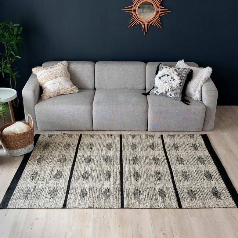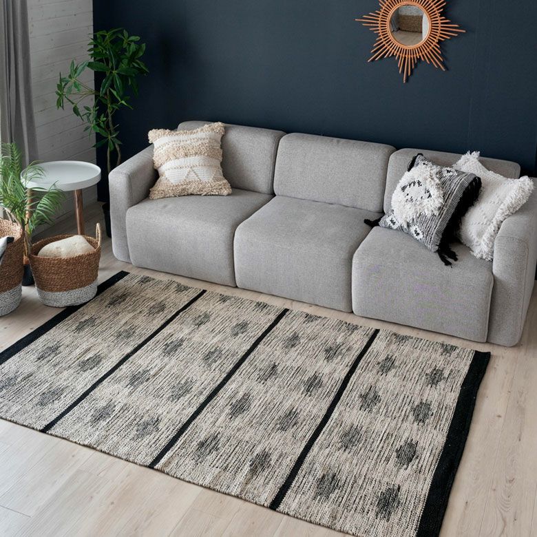 キリムラグ 民族柄 民族調 サーフィン コットン 綿 140×200 ラグ ラグマット オルテガ柄 ダークトーン デザイン 140×200cm 黒 グレー BOHO [34431]【 カーペット 絨毯 じゅうたん おしゃれ お洒落 エスニック ボーホー モノトーン 長方形 オールシーズン 春 夏 秋 冬 厚手 敷物 マット アジアン アジアン雑貨 】