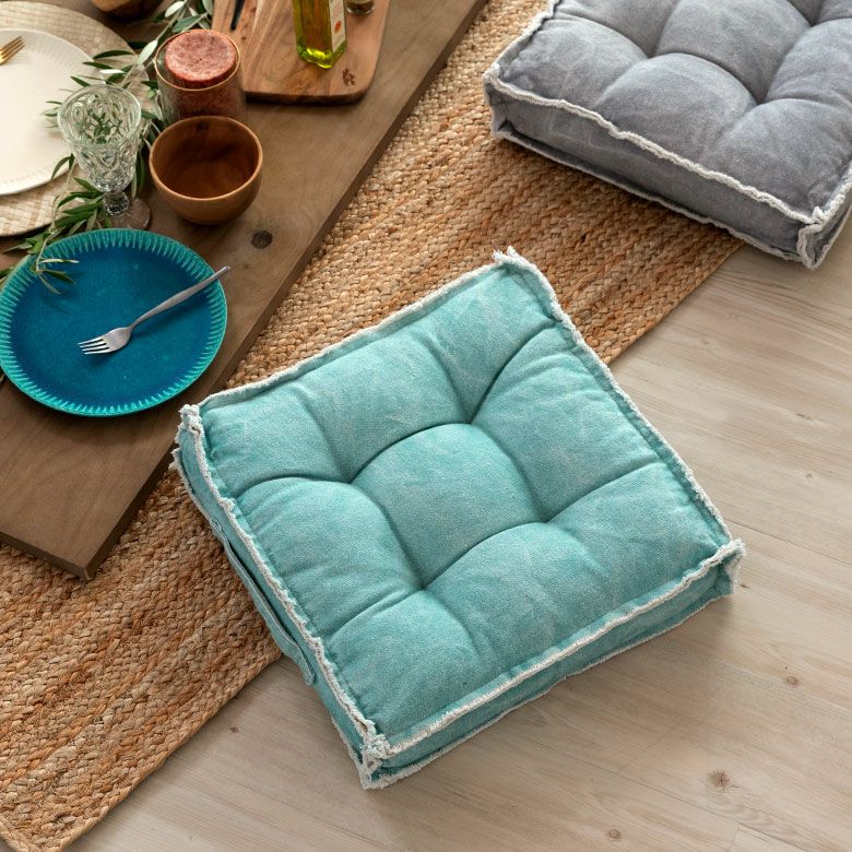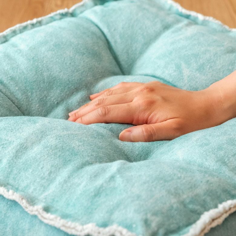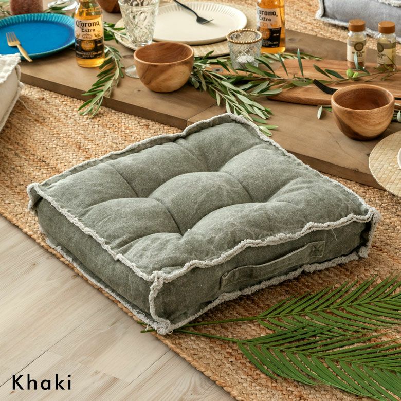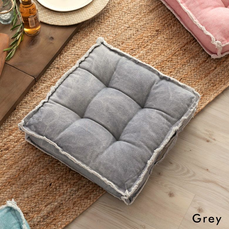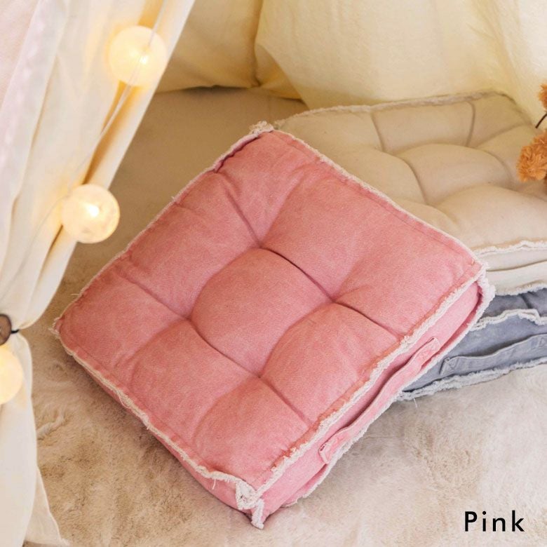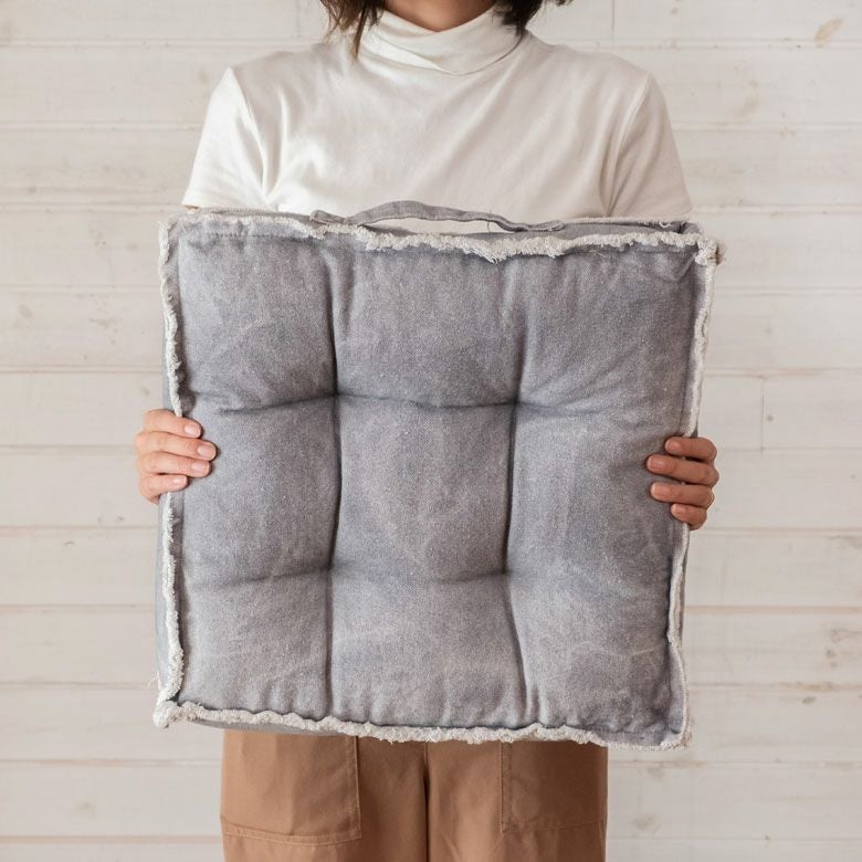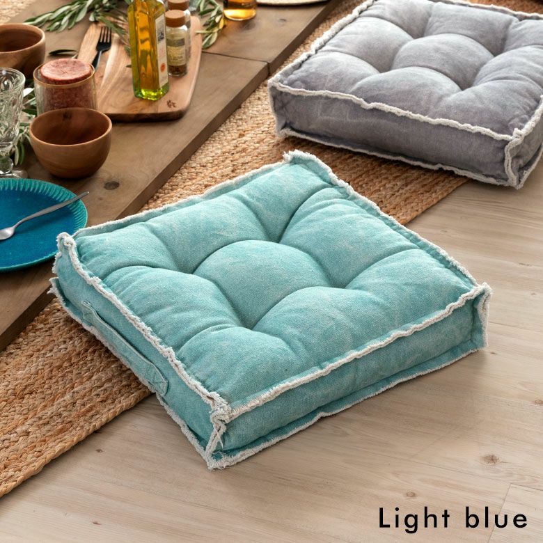 クッション ファブリック 座布団 シートクッション 模様替え フロアクッション クッキークッション ビスケットクッション 無地 デニム 42×42cm 暑さ8cm [66939]【 座布団 座椅子 正方形 四角 厚手 厚い ピンク カーキ ライトブルー グレー ホワイト ガーリー キッズ モロッコ バリ おしゃれ リゾート 北欧 モダン 】