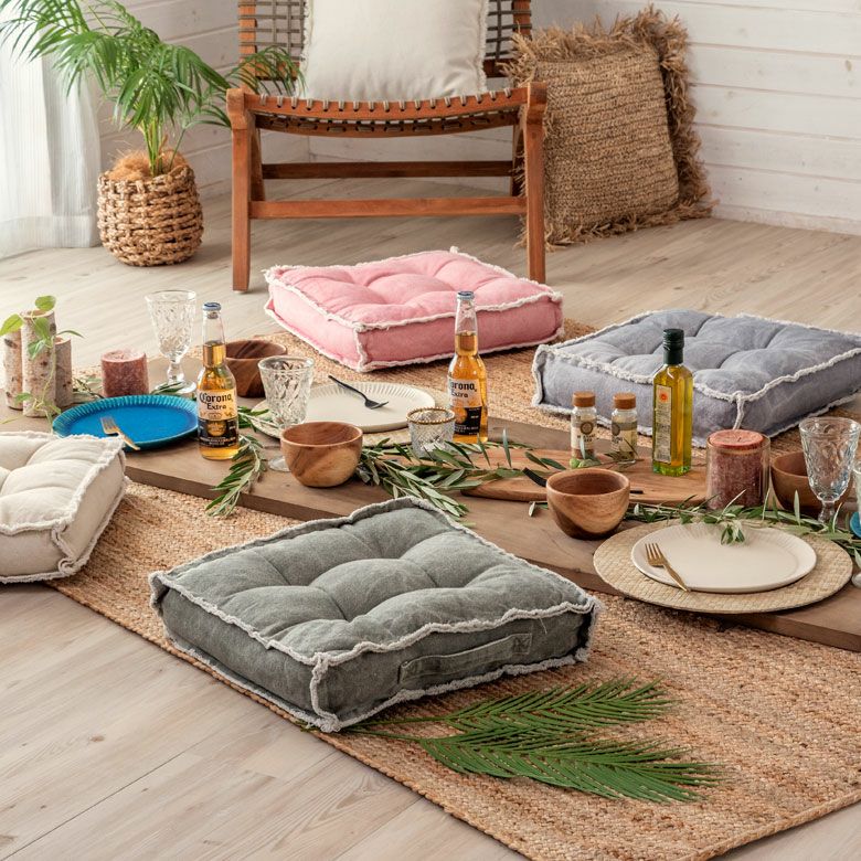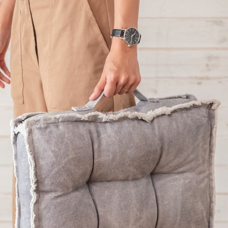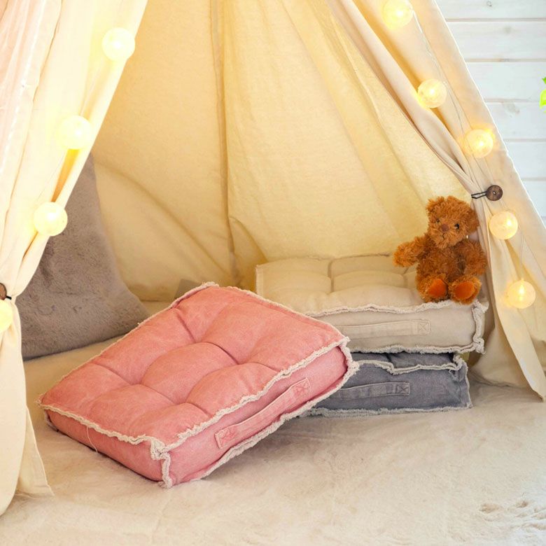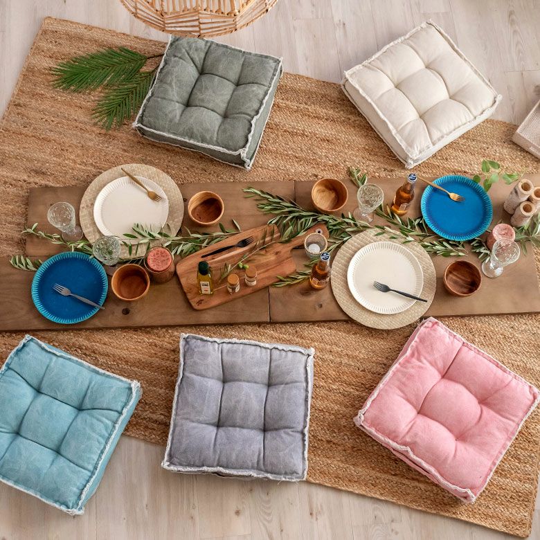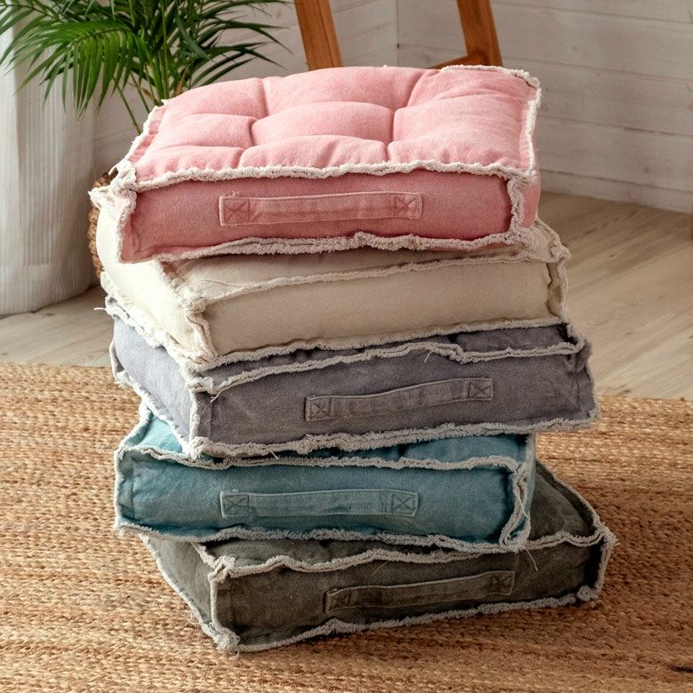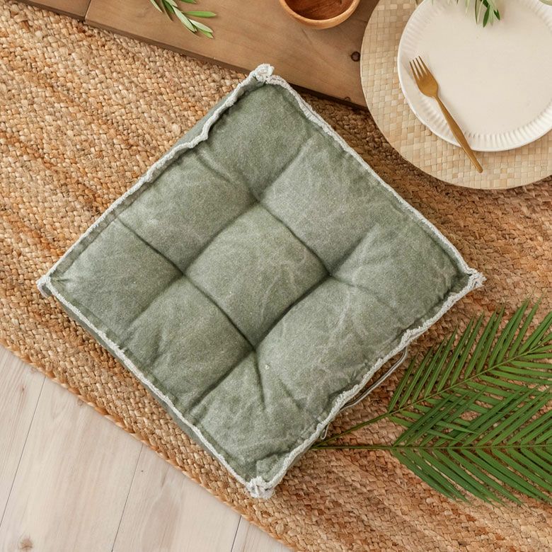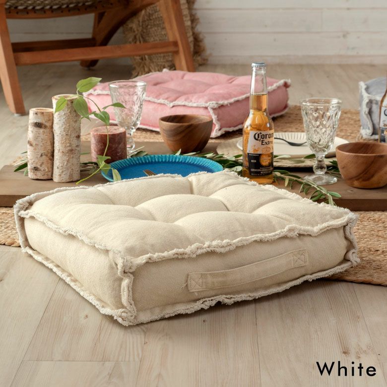 クッション ファブリック 座布団 シートクッション 模様替え フロアクッション クッキークッション ビスケットクッション 無地 デニム 42×42cm 暑さ8cm [66939]【 座布団 座椅子 正方形 四角 厚手 厚い ピンク カーキ ライトブルー グレー ホワイト ガーリー キッズ モロッコ バリ おしゃれ リゾート 北欧 モダン 】