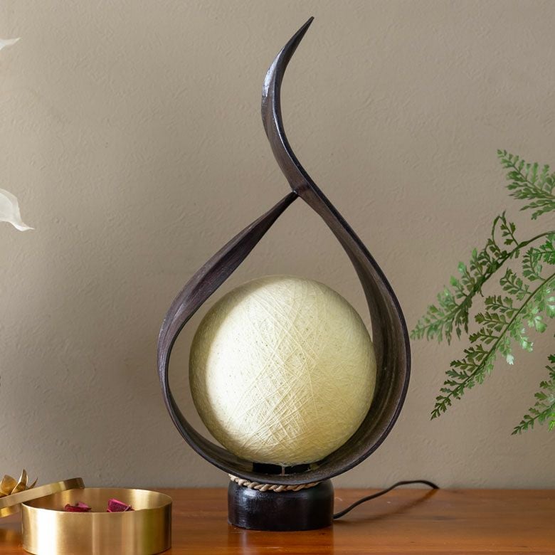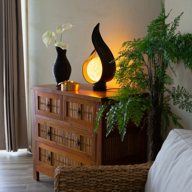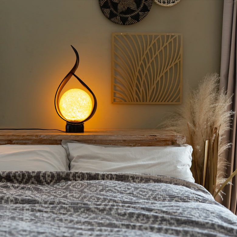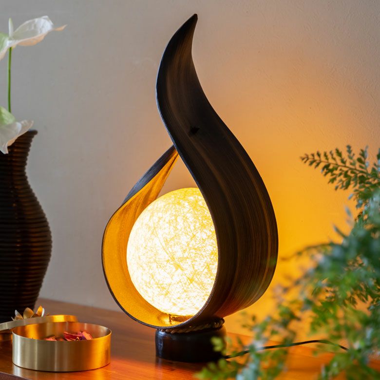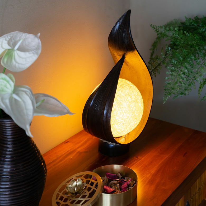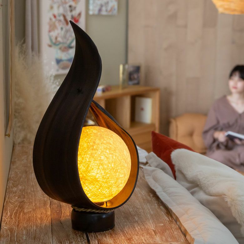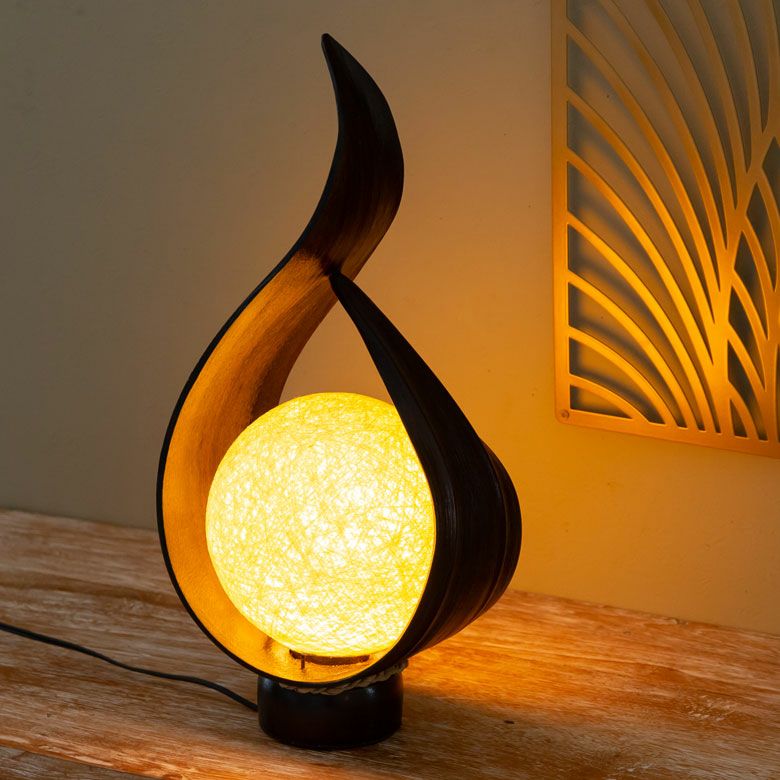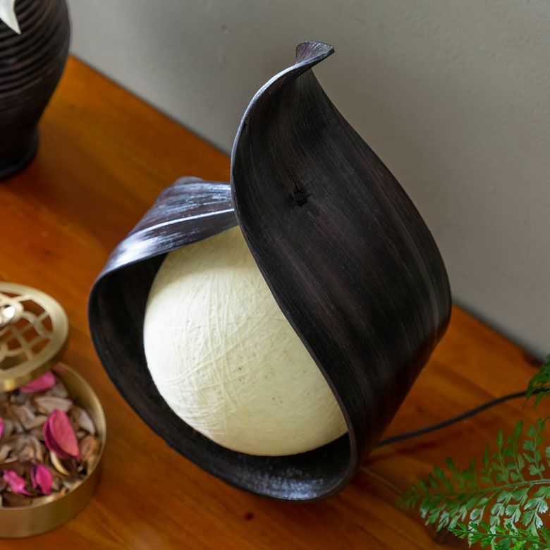アジアン照明 電気スタンド インテリアライト スタンドライト テーブル ランプ パームリーフ ボールランプ オブジェ 口金E12 LED対応 電球付き 40wまで [13990]【 間接照明 アジアンライト テーブルライト ナイトランプ 卓上ライト おしゃれ リビング 寝室 玄関 ベッドサイド バリ島 バリ雑貨 アジアン アジアン雑貨 和風 和モダン 】