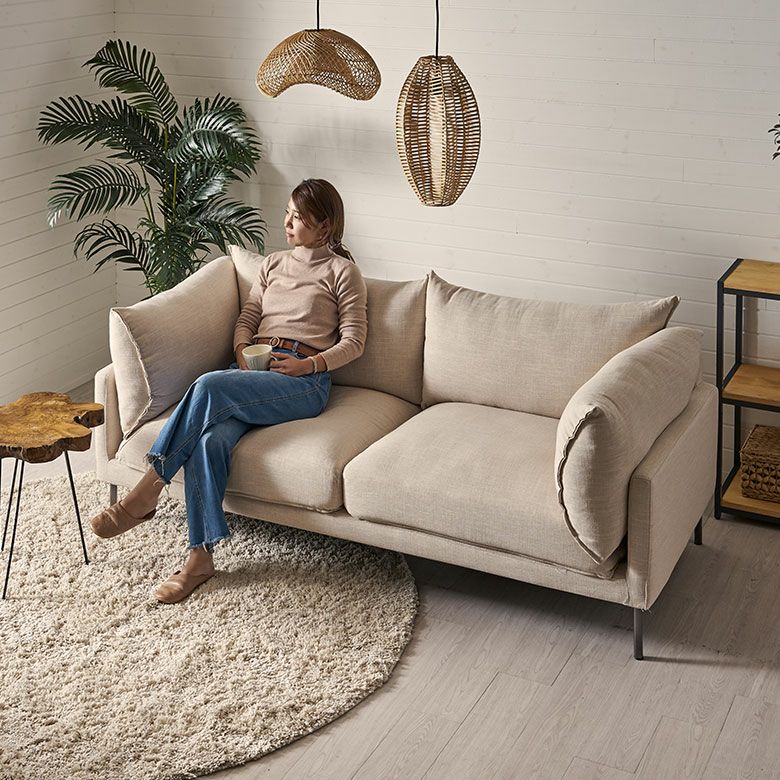 組立式 大きめ ゆったり ソファー 布地 肘掛けあり 背もたれあり カフェ 店舗 応接間 一人暮らし ワンルーム ファミリー 模様替え 新生活 引っ越し祝い 結婚祝い ギフト プレゼント ソファ 2人掛け 二人掛け 2P クッション付 ウッド 木製 約 W 193cm D 89cm H 84cm SH 46cm グレー アイボリー カバーリング 手洗い可能 ひじ掛け ファブリック スチール 脚付き リビング ナチュラル 布張り 北欧 おしゃれ モダン シンプル 家具 インテリア アジアン [91605]