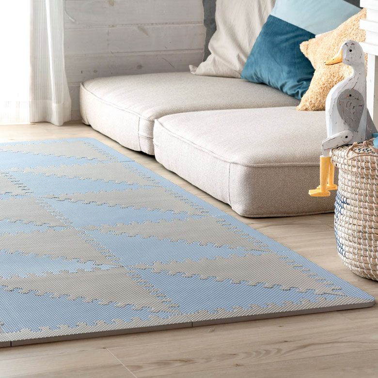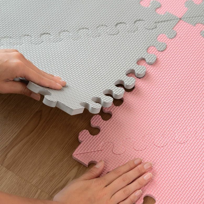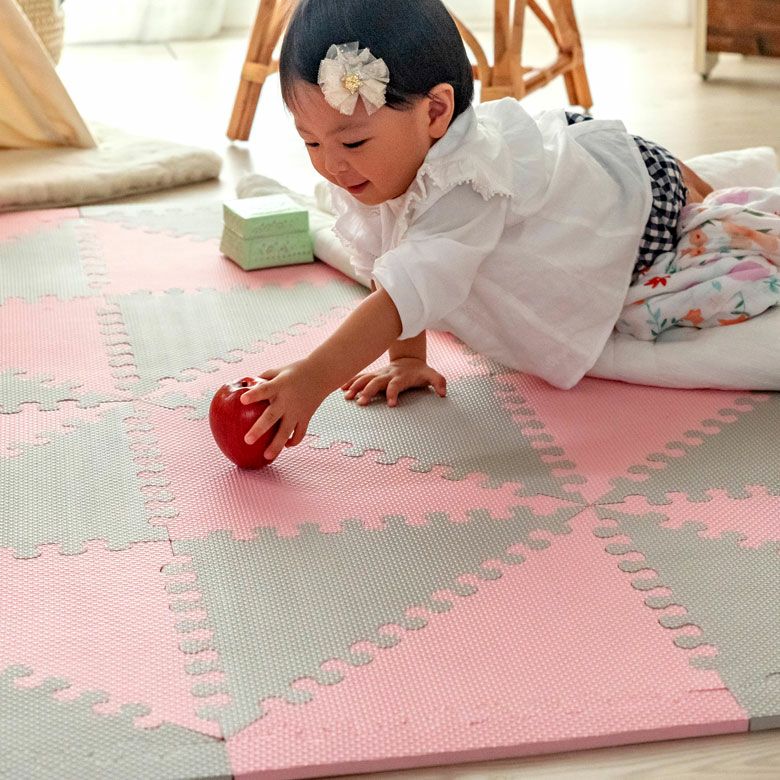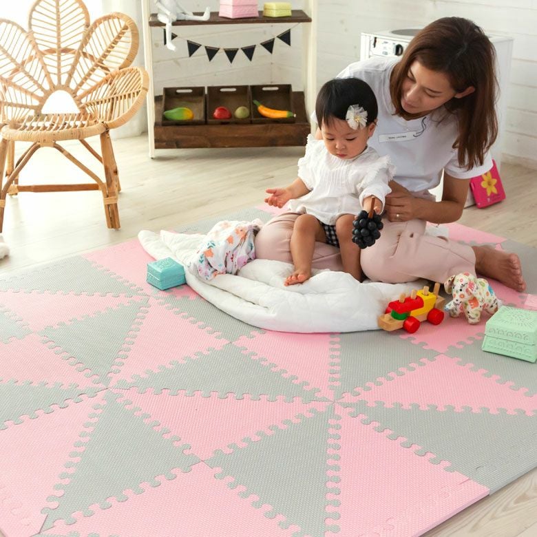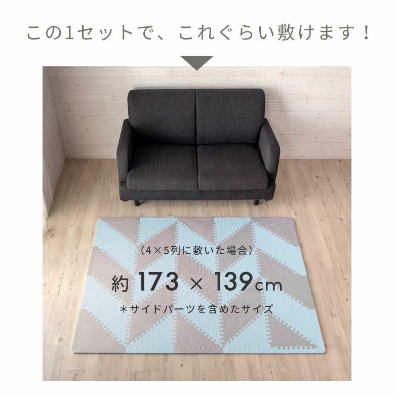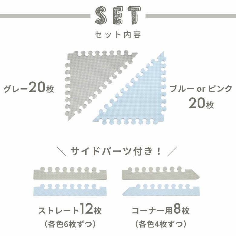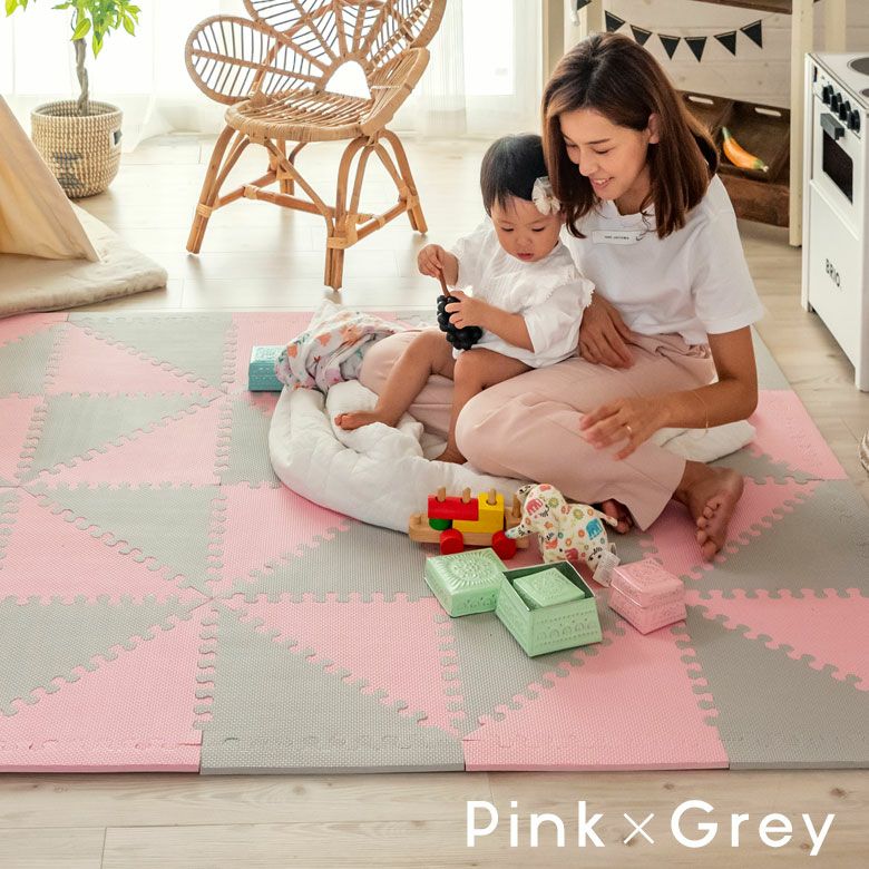 子供部屋 トライアングル カーペット クッションマット パズル プレイマット ジョイントマット フロアマット 子供 ベビー キッズ マット 約1.5畳用 サイドパーツ付 [84086]【 三角形 三角パーツ 40枚 W 173 × D 139 × 1 防音 衝撃吸収 厚さ1cm ピンク ブルー グレー 軽量 耐水性 水洗い可 凸凹加工 北欧 カジュアル 】