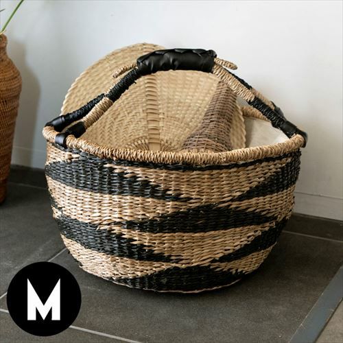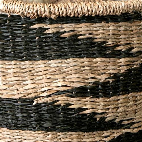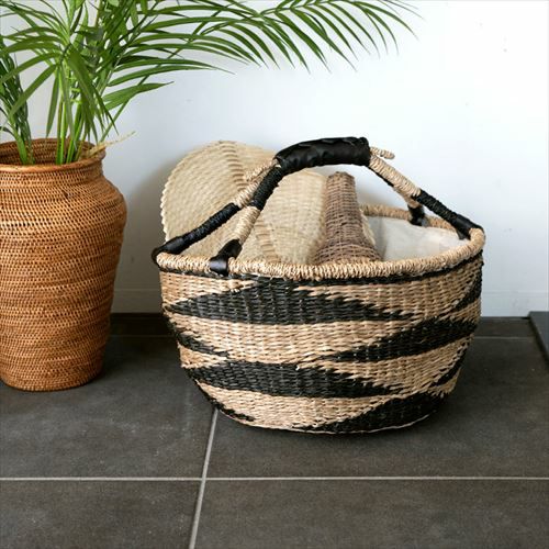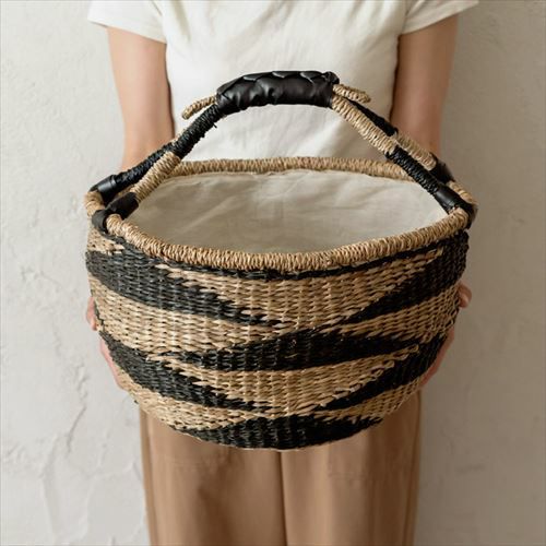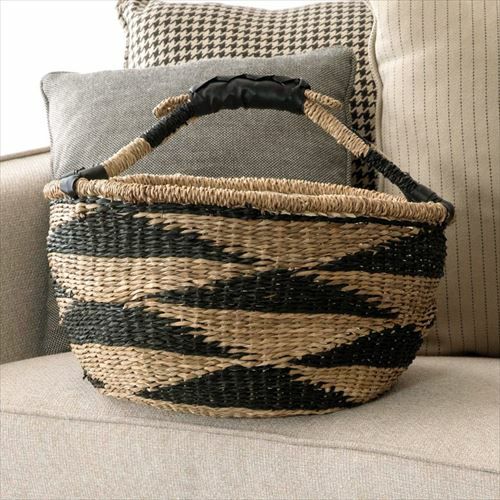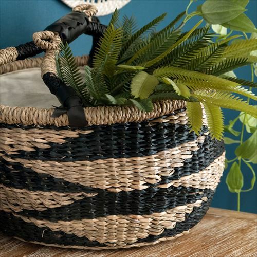 カゴ 籠バスケット ラウンドバスケット 収納ボックス リビング かご バスケット 持ち手 シーグラス製 ラウンド型 ナチュラル×黒 [51194]【 かごバスケット カゴ 収納かご 収納バスケット 北欧 BOHO ボーホー 収納 小物入れ 籠 カゴバスケット おしゃれ かわいい アジアン雑貨 アジアン 雑貨 バリ雑貨 】