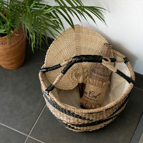 カゴ 籠バスケット ラウンドバスケット 収納ボックス リビング かご バスケット 持ち手 シーグラス製 ラウンド型 大きい ナチュラル×黒 [51195 51195-gr]【 かごバスケット カゴ 収納かご 収納バスケット 荷物入れ 北欧 BOHO ボーホー 収納 小物入れ 籠 カゴバスケット おしゃれ かわいい アジアン雑貨 アジアン 雑貨 バリ雑貨 】