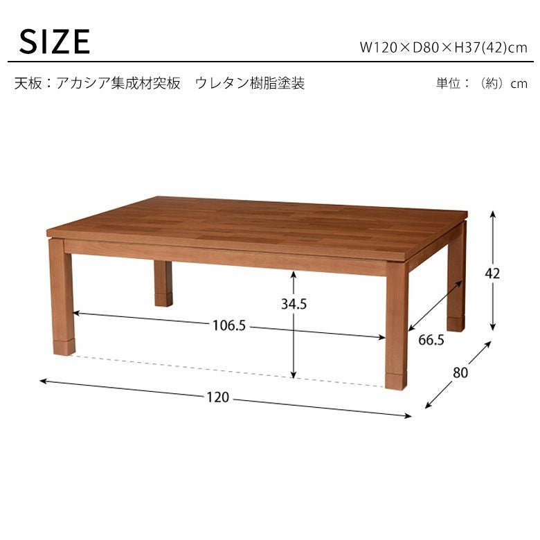 オールシーズン使える継ぎ足付きのこたつ用リビングテーブル。 こたつ テーブル 長方形 タリス 120×80cm (96001)【こたつ テーブル 長方形 天板 ヒーター 120 アカシア 継ぎ足 リビング ナチュラル オールシーズン 暖房器具 リビングテーブル 薄型ヒーター スタイリッシュ シンプル おしゃれ アジアンインテリア】 在宅勤務