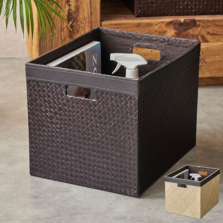 レザーのような編み目が特徴のパンダン製収納ケース。便利な引き手付きでシェルフやラックにすっきり整理できます。 パンダン製ポイントレザーのスクエア収納ボックス L 2色展開 収納ケース インナーボックス カラーボックス 対応 小物入れ 入れ物 引き出し 収納箱 バリ雑貨 アジア雑貨 アジアン雑貨 アジアン家具 おしゃれ インテリア リビング モダン 整理ケース [bl-1174]
