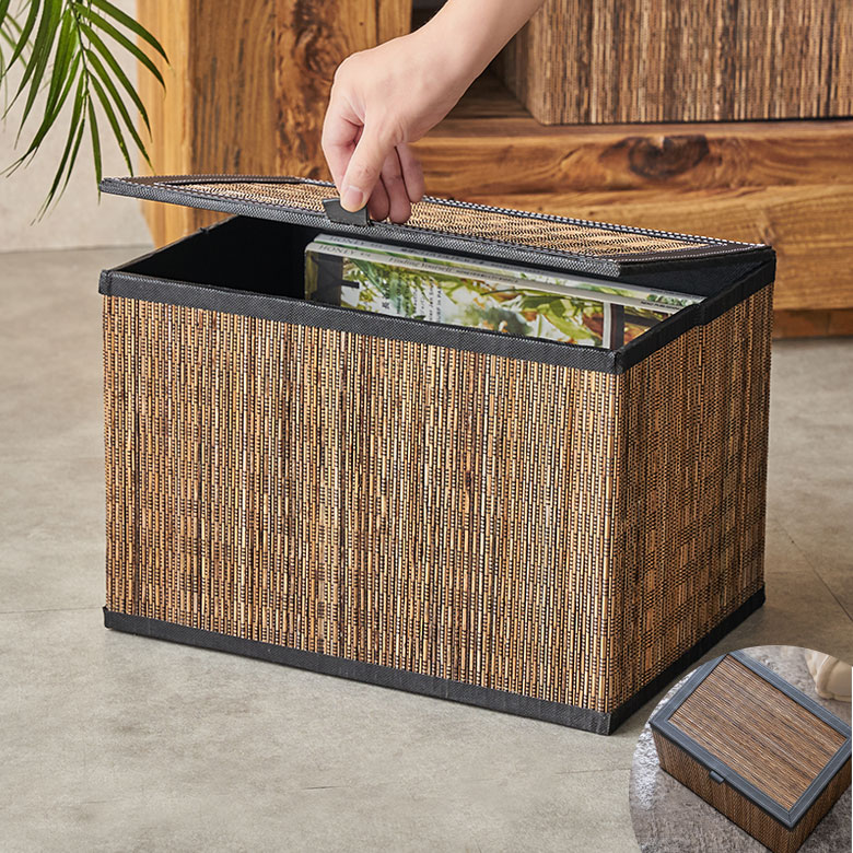 まるでレザーのような重厚感。バリ島の人気アジアン雑貨 縦横自在パンダンで編まれた四角い収納ボックスケース[10653]【引き出し 収納ケース ボックス バリ 雑貨 アジアン雑貨 アジアン小物入れ おしゃれ インテリア ナチュラル雑貨 蓋つき フタ付き ふた付き アジア雑貨 蓋付き cd dvd モダン チェスト 整理ケース バリ雑貨】
