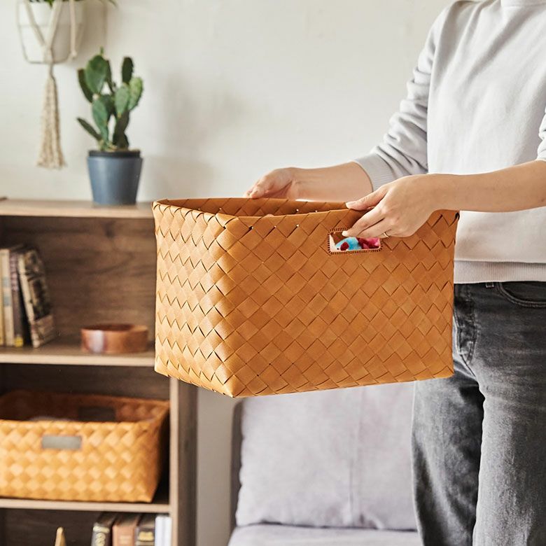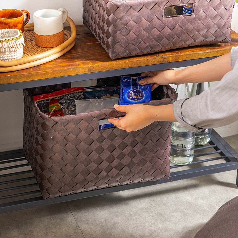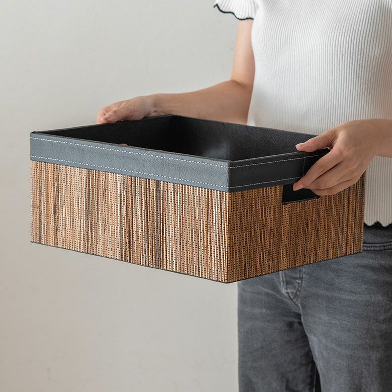収納箱 収納BOX インナーケース ストレージボックス おもちゃ箱 収納ボックス インナーボックス カラーボックス対応 パームリディ 持ち手付き スクエア [M] 約W26.5×D33.5×H14cm [13994]【 収納ケース 取っ手付き 衣類収納 小物収納 整理ケース 引き出し リビング収納 クローゼット おしゃれ アジアン雑貨 アジアン 雑貨 バリ雑貨 】