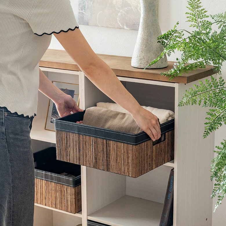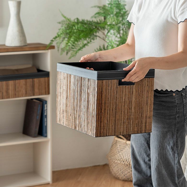 収納箱 収納BOX インナーケース ストレージボックス おもちゃ箱 収納ボックス インナーボックス カラーボックス対応 パームリディ 持ち手付き スクエア [L] 約W26.5×D33.5×H26.5cm [13995]【 収納ケース 取っ手付き 衣類収納 小物収納 整理ケース 引き出し リビング収納 クローゼット おしゃれ アジアン雑貨 アジアン 雑貨 バリ雑貨 】