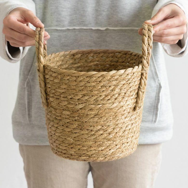 かごバスケット 収納かご 収納バスケット おもちゃ収納 プランターカバー 植木鉢カバー バスケット 持ち手付き ラッシュ製(い草) Sサイズ 約 W 22.5 × D 22.5 × H 19 cm [67084]【 鉢カバー 5号 6.5号 プランター入れ カバー ポット プランツバスケット かご 籠 観葉植物 北欧 おしゃれ アジアン 雑貨 アジアン雑貨 】