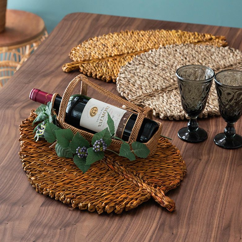 プレースマット 葉っぱ型 ハンドメイド マット 敷物 ランチョンマット プレイスマット シーグラス 天然素材 リーフ型 約 W 50cm D 33cm H 1cm [51282]【 ランチマット テーブルウェア キッチン雑貨 キッチン小物 ダイニング 食卓 テーブルコーディネート おしゃれ 北欧 リゾート ナチュラル アジアン 雑貨 】