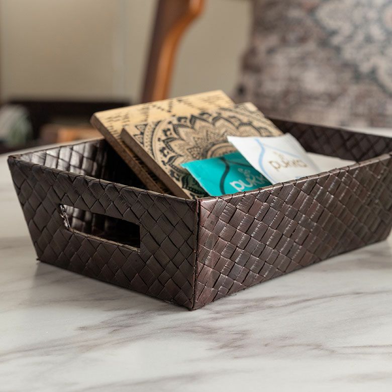 レザーのような編み目のアジアンバスケット。ゴミ箱はもちろんプランターカバーや収納バスケットにも使えるバリ島の人気アジアン雑貨 パンダンで編まれたアジアンバスケット[6238]Sサイズ 【四角形 ごみ箱 ゴミ箱 ダストBOX くずかご ダストボックス ごみばこ プランターカバー 鉢カバー プランター入れ インテリア おしゃれ キッチン 縦型 便利 アジアン リビング バリ雑貨 アジアン雑貨】]【アジアン雑貨のアジア工房本店】